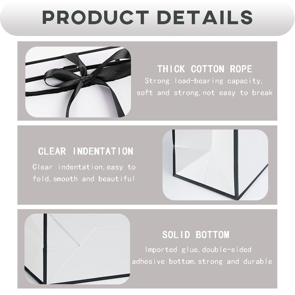 【SIZE AND QUALITY】Small:11"x4"x8"/Medium:12.6"x4.3"x10.5".100% brand new made by QLSKO.Made from high-quality paper materials ensures that it is more beautiful and has a stronger load-bearing capacity.Give a beautiful ribbon,comes with cotton rope handles looks classier and more fashionable as a gift bag.It's a perfect gift bag choice to hold your clothes, jewelry,cosmetics, snacks, drinks, etc.