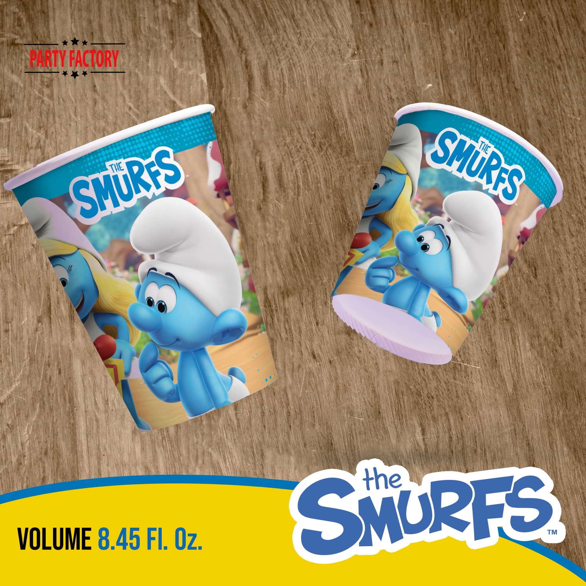 DEKOHIGHLIGHT: The paper cups show the little blue Smurfs from the cartoon series of the same name. An absolute highlight for all big and small fans of the characters from Smurfville.