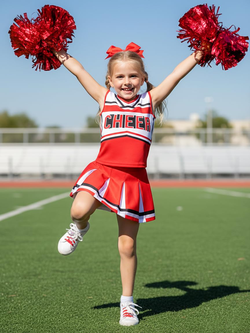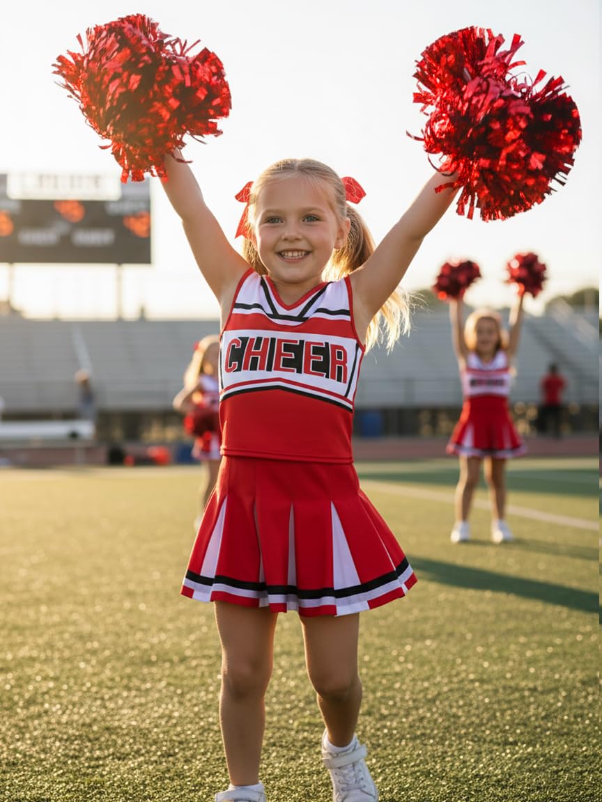 Fun and Eye-Catching Design: The vibrant colors and eye-catching design of this cheerleader outfit will make your little girl stand out on the field or at events. She'll feel like a true cheerleader while having a blast!