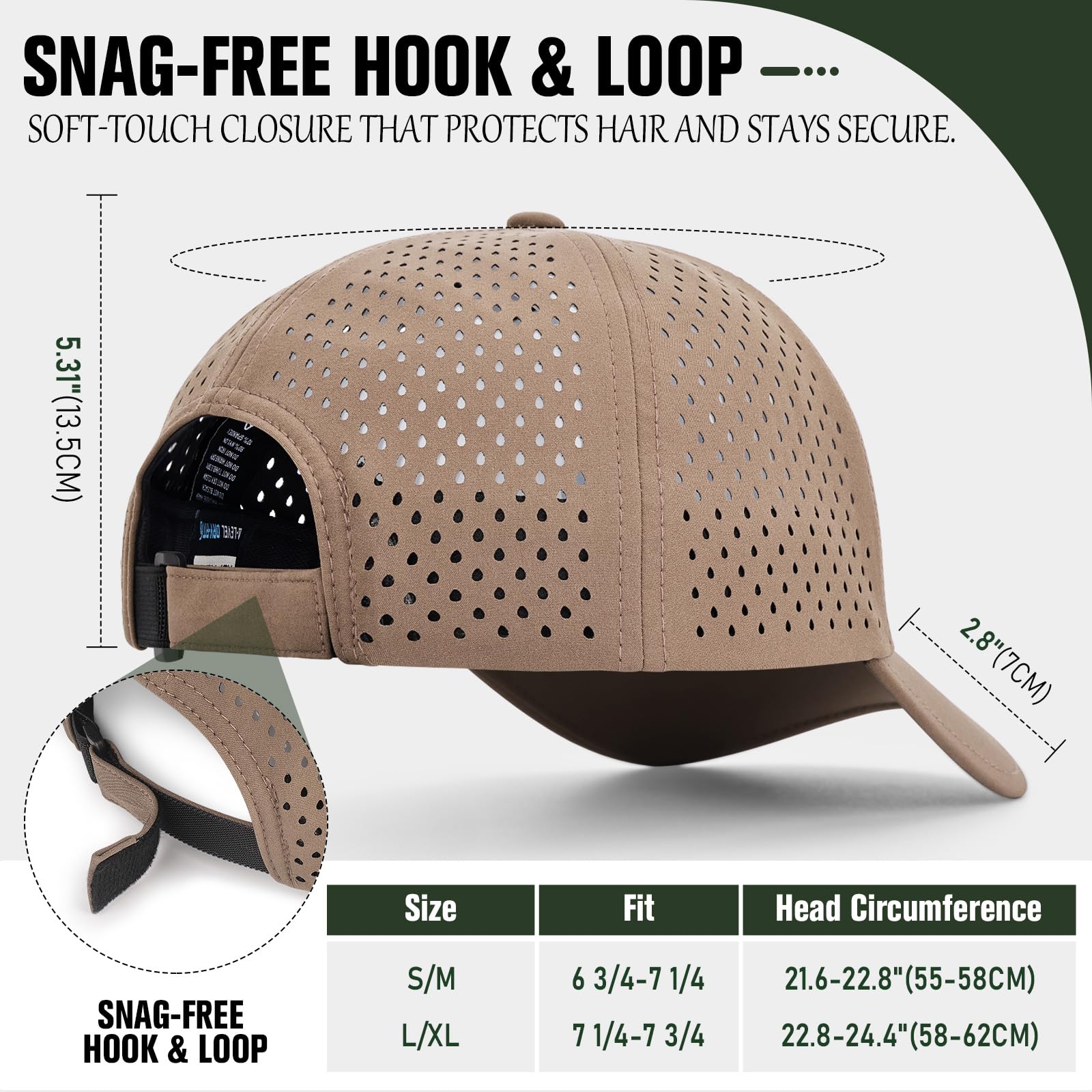 【Dynamic Fit Adjustment】Tired of hat pulling hair? Our hair friendly hook and loop closure design allows for immediate and perfect styling. Just pull to the appropriate size, press and ensure safety. Paired with elastic band, enhance the hat's adaptive adjustment. Let you instantly fit perfectly! it stays put through workouts, windy days, and adventures. Designed for both men and women, these gym hat comfortably fit head circumferences 21.6-23.6'' (55-60cm).
