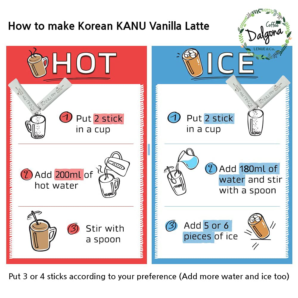 ☕️ KANU Double Shot Latte: Maxim Kanu Double Shot Latte, which adds depth of taste with richer coffee, uses only the highest quality Kanu coffee extracted at low yield and low temperature and latte creamer with a high content of fresh milk; Ingredients: Latte creamer(Vegetable cream(Coconut oil)), Coffee 9.62%, Fat-free Milk, Sugar