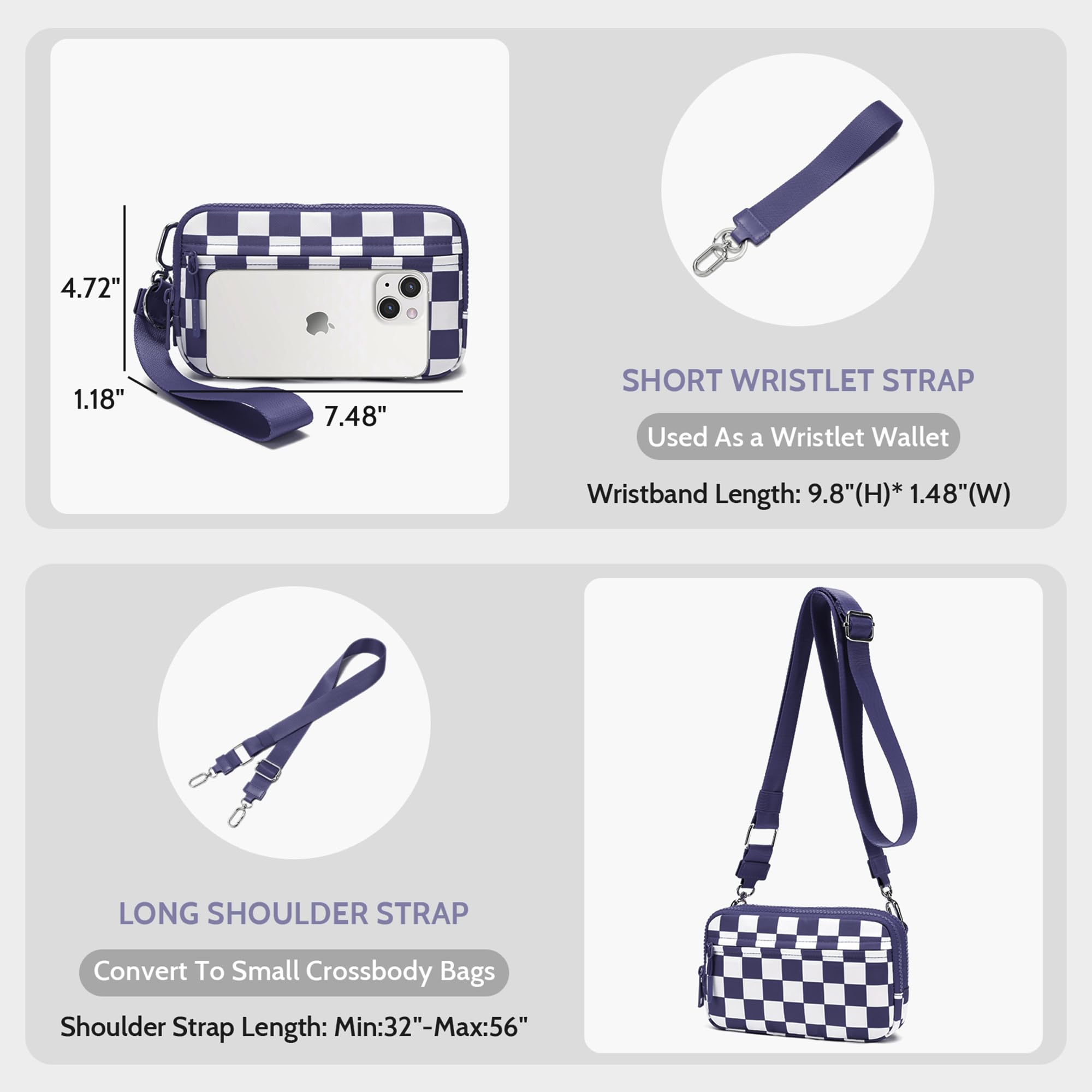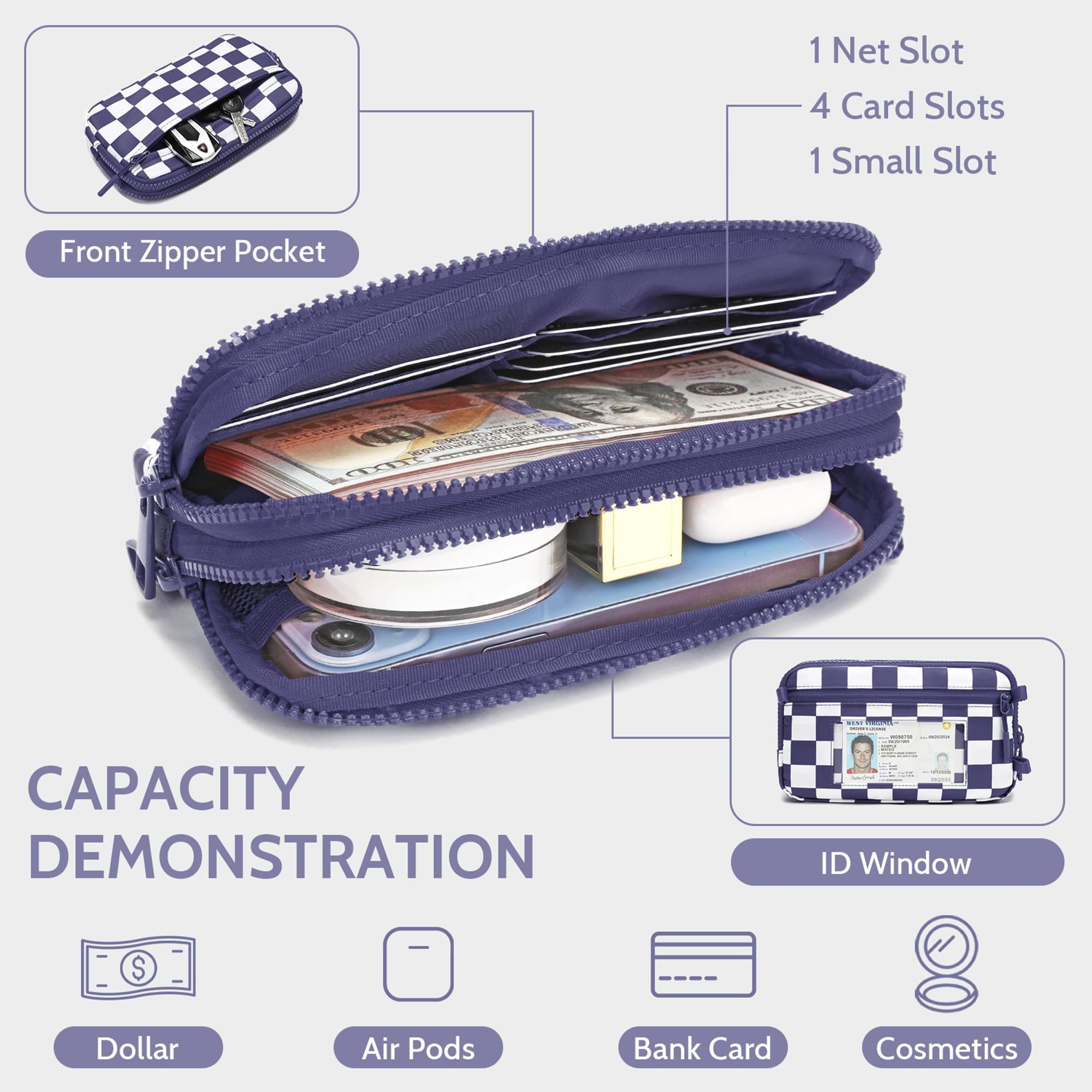Fashion-Forward Design FODOKO stylish wristlet wallet features a top zipper closure for secure storage, - 6 RFID-blocking card slots+ 4 compartments (2 exterior zipper pockets, 1 ID window, 1 mesh pouch) . Perfect for organizing cards, cash, phones, and daily essentials with ease.