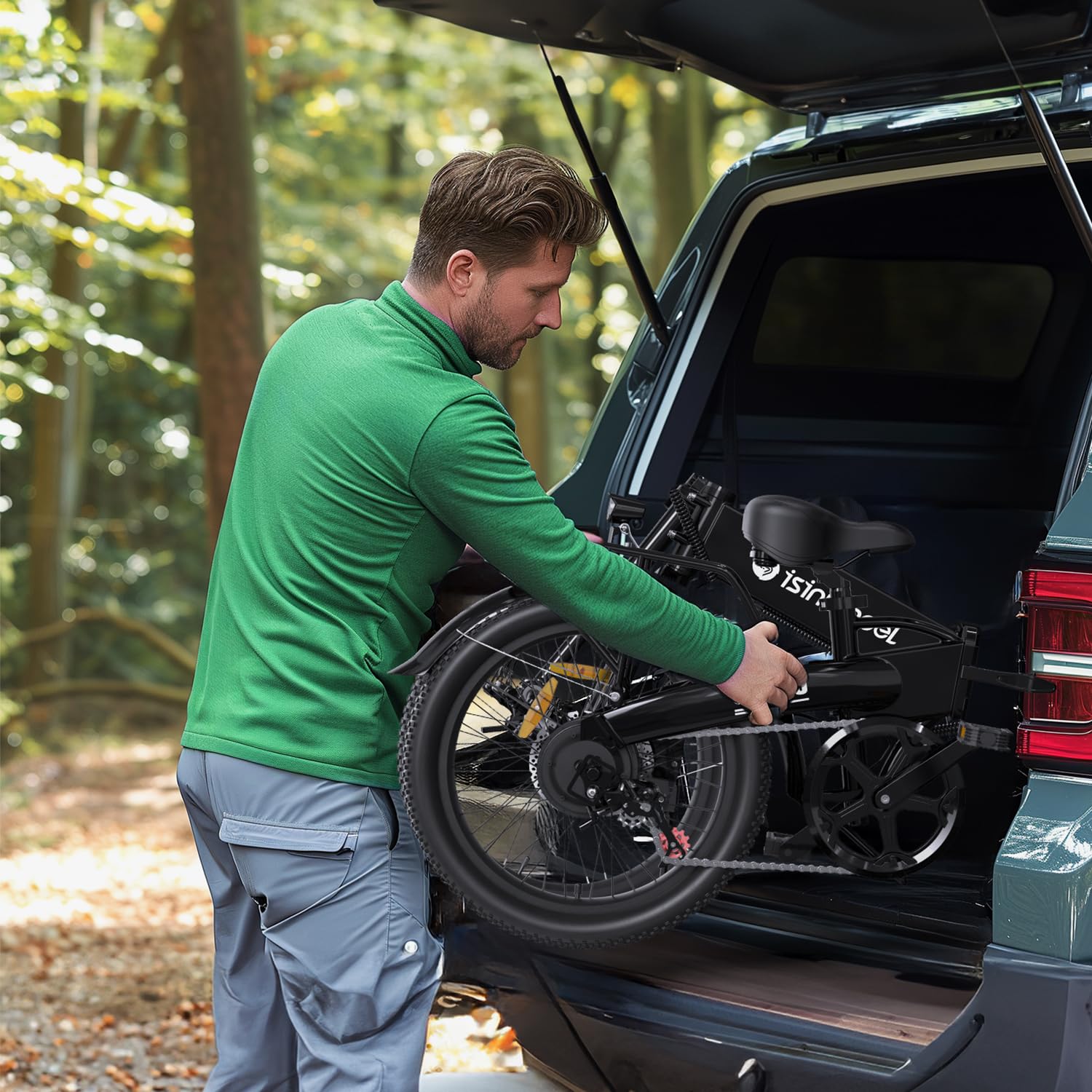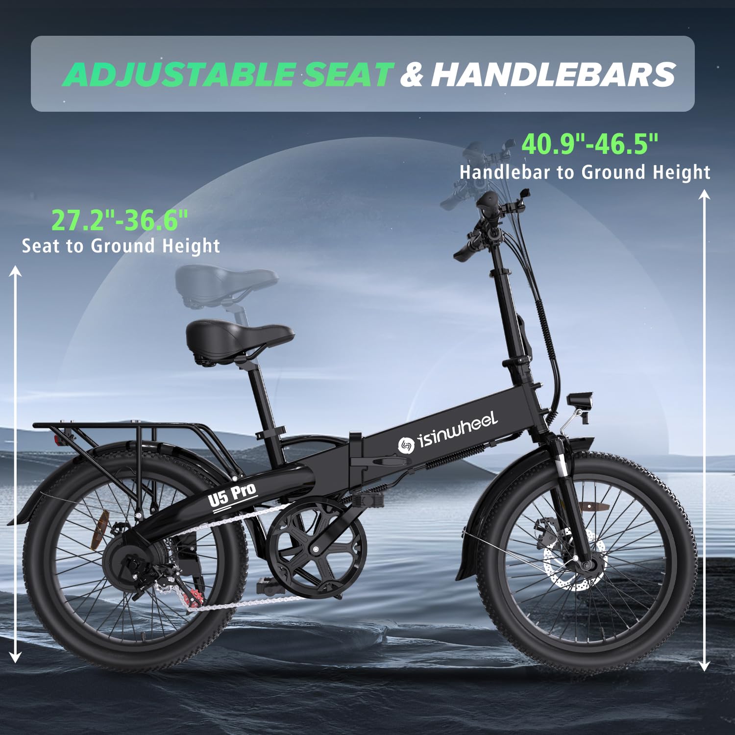 Foldable Convenience: Fold your ride down to a compact 37.4 × 17.7 × 27.5 inches (0.3 m³) in seconds. U5 PRO electric bike for adults weighs only 53.6 lbs and slips easily into car trunks, offices, or apartments—offering unmatched portability and convenience wherever you go
