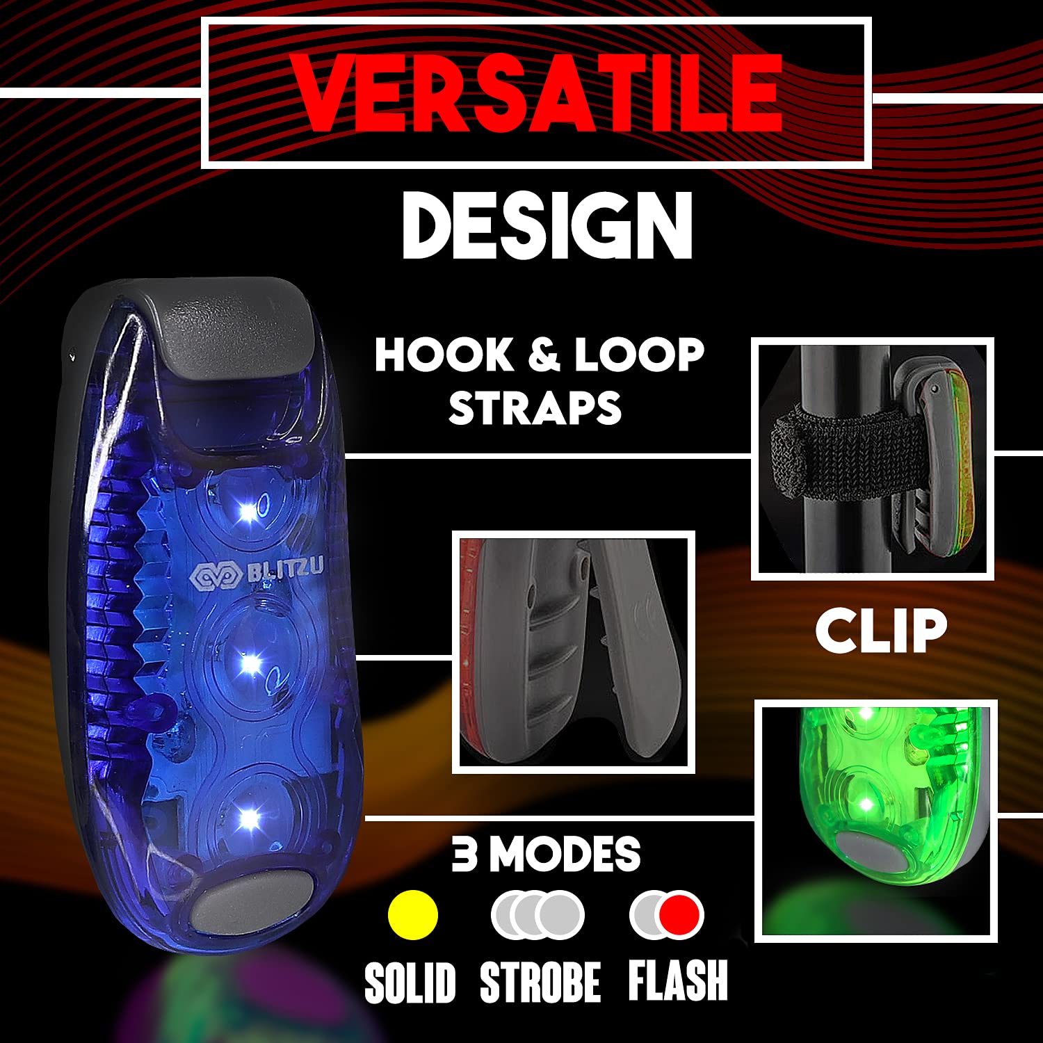 Feature: These led safety light easy to use, strong, easy to install quickly, without any tools required, waterproof shell design, the no-slip clip attaches easily and stays on securely, clip on to your belt, pockets, backpack, anywhere on your clothing, or onto the included elastic velcro straps.