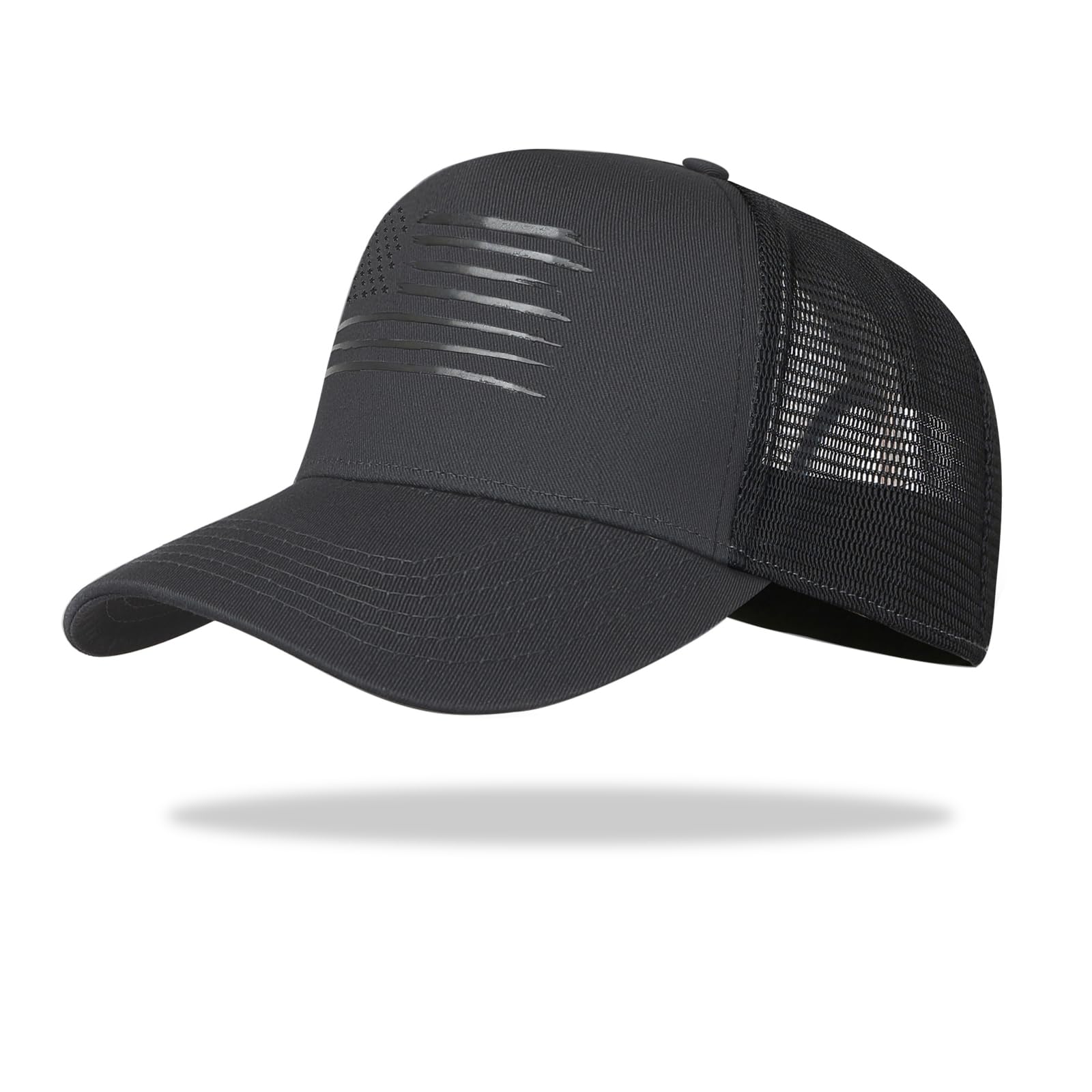 3.Breathable & Durable Construction – Made with 100% cotton twill front panels and rugged polyester mesh back panels, this American flag hat offers superior breathability and long-lasting durability. The mesh sides and back maximize airflow, keeping your head cool and dry during outdoor activities like hiking, camping, or sports.