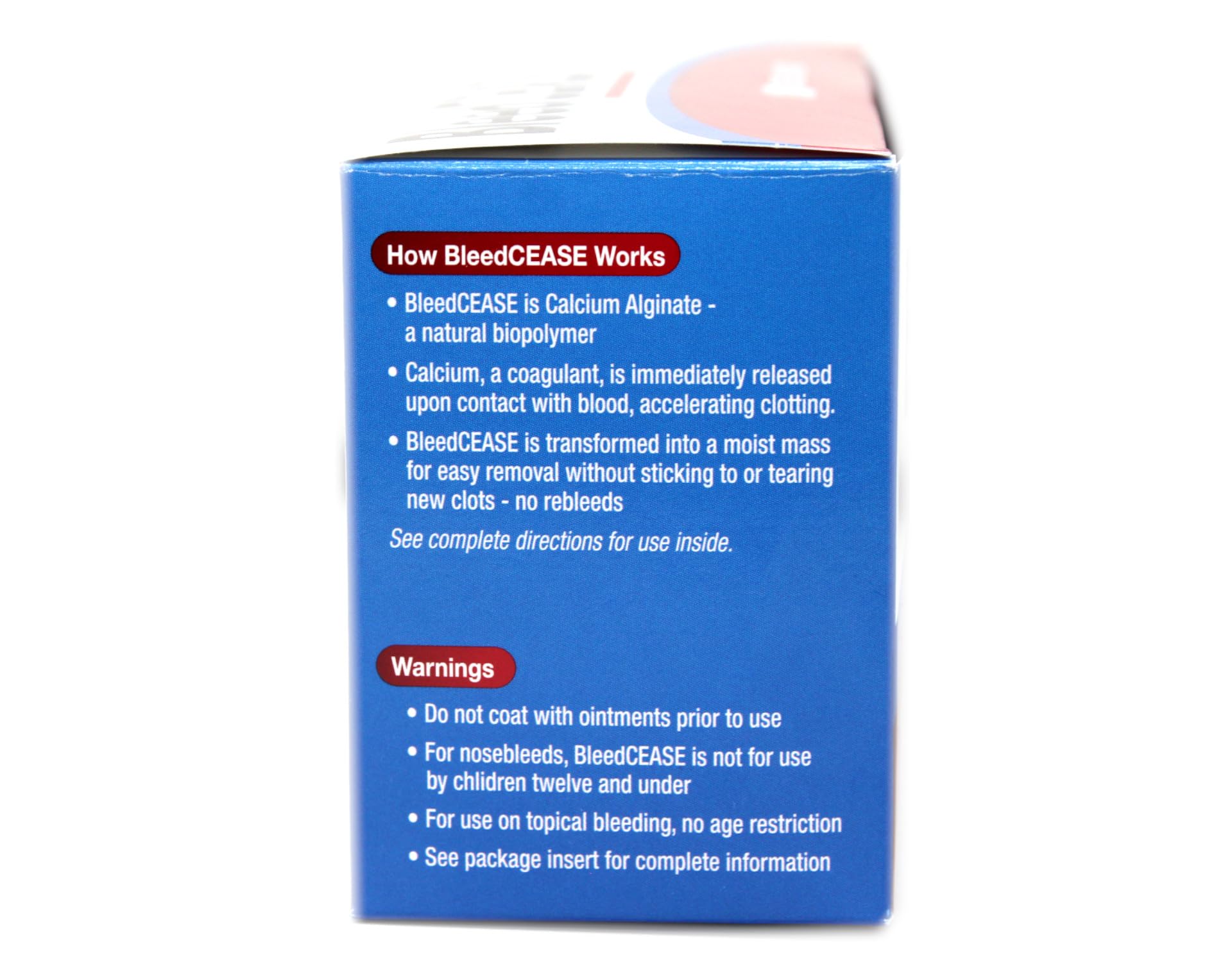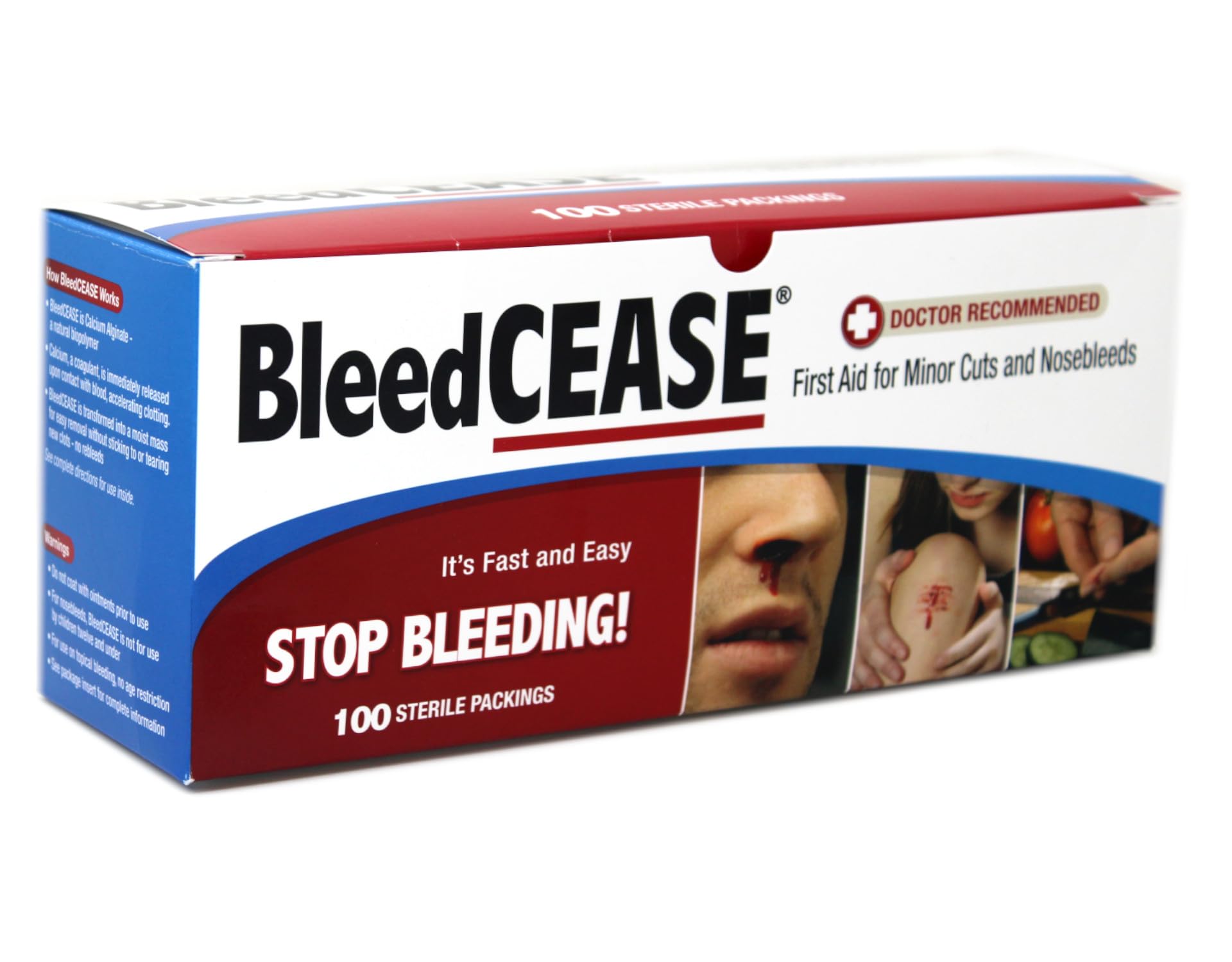 NasalCEASE is a natural based polymer, calcium alginate, derived from brown seaweed and through a proprietary process is manufactured into a unique stop bleeding product