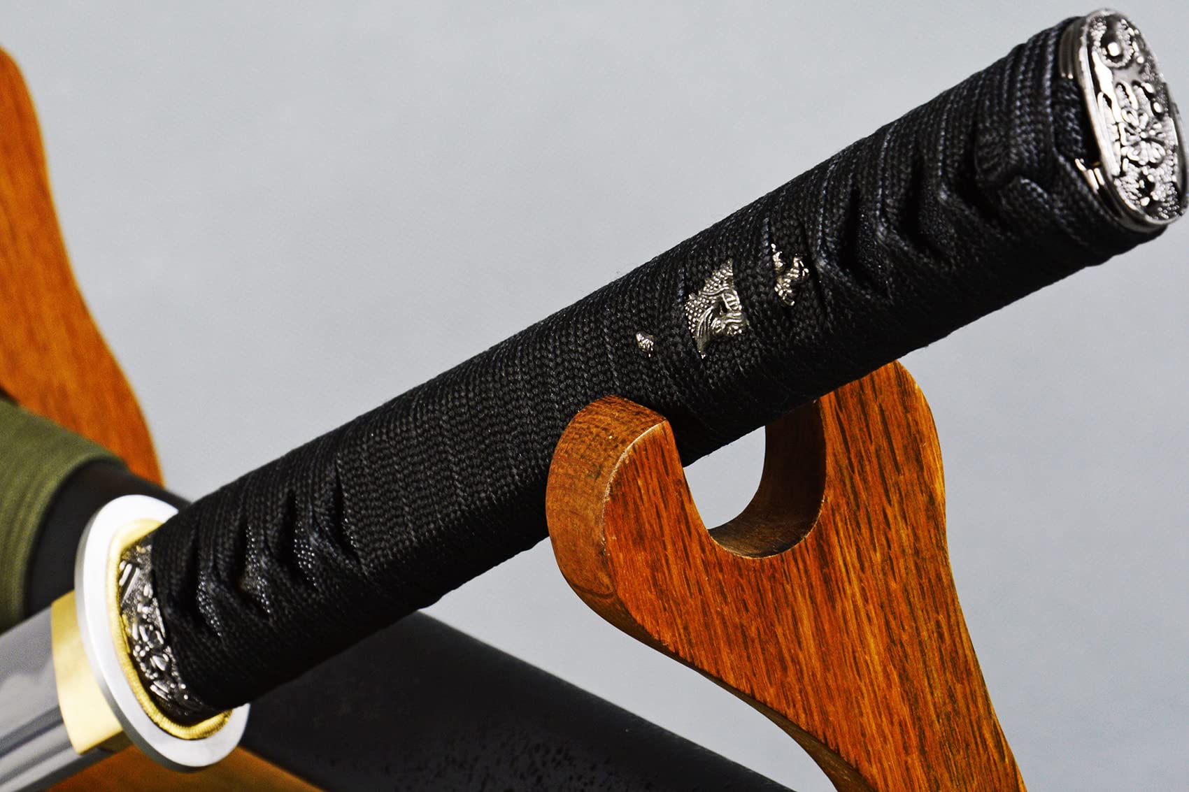 🥷🏿SWORD CRAFTSMANSHIP - It is a sturdy and cool sword. It is made by experienced sword smiths using traditional methods of making swords by hand, more than 10 production processes include: material selection, forging, hardening, quenching, polishing, grinding, sharpening and final assembly, all finished manually