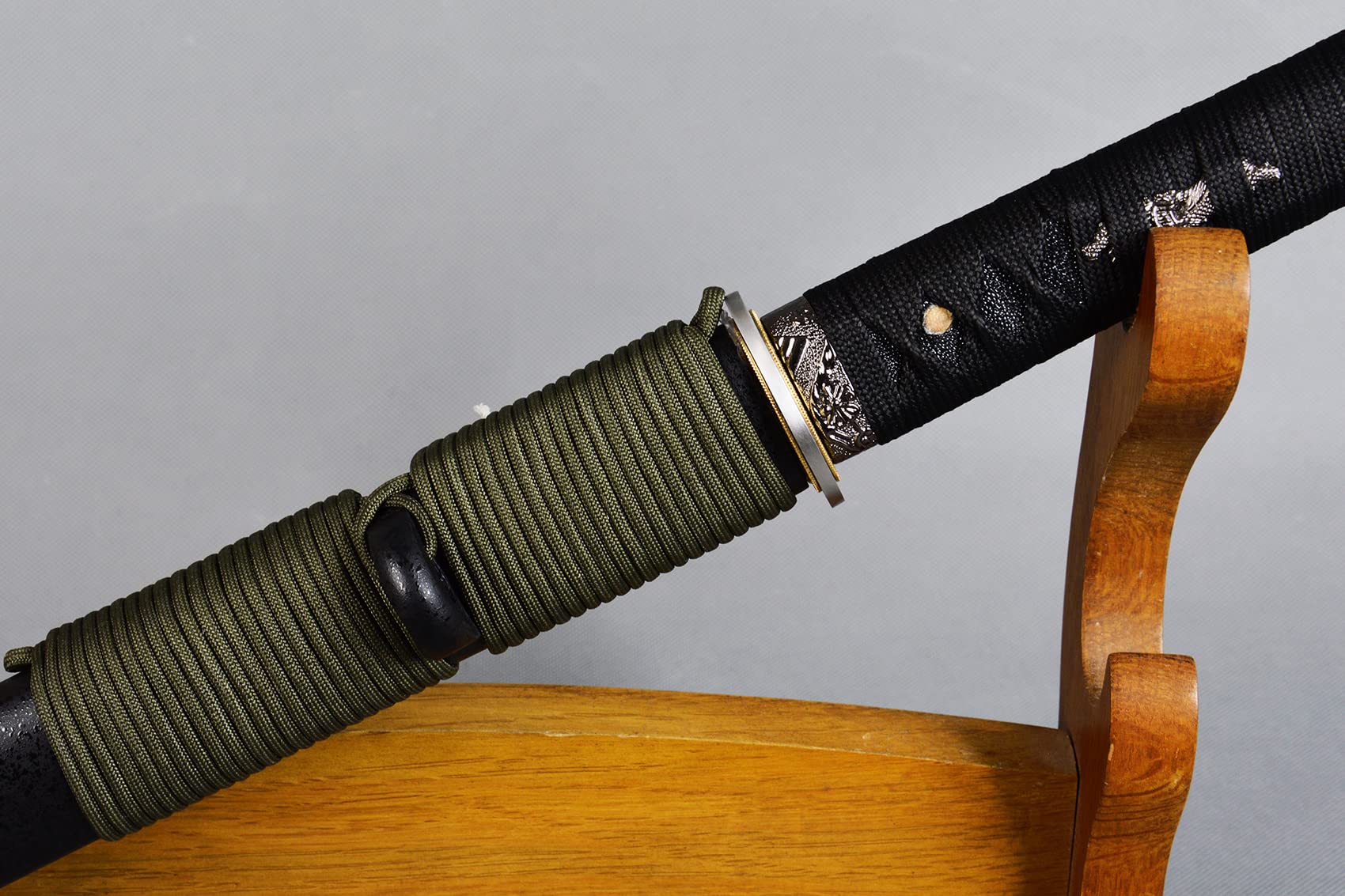 🥷🏿SHEATH - SCABBARD- matt black hardwood scabbard wrapped by army green parachute cord which can be used as an outdoor survival tool.