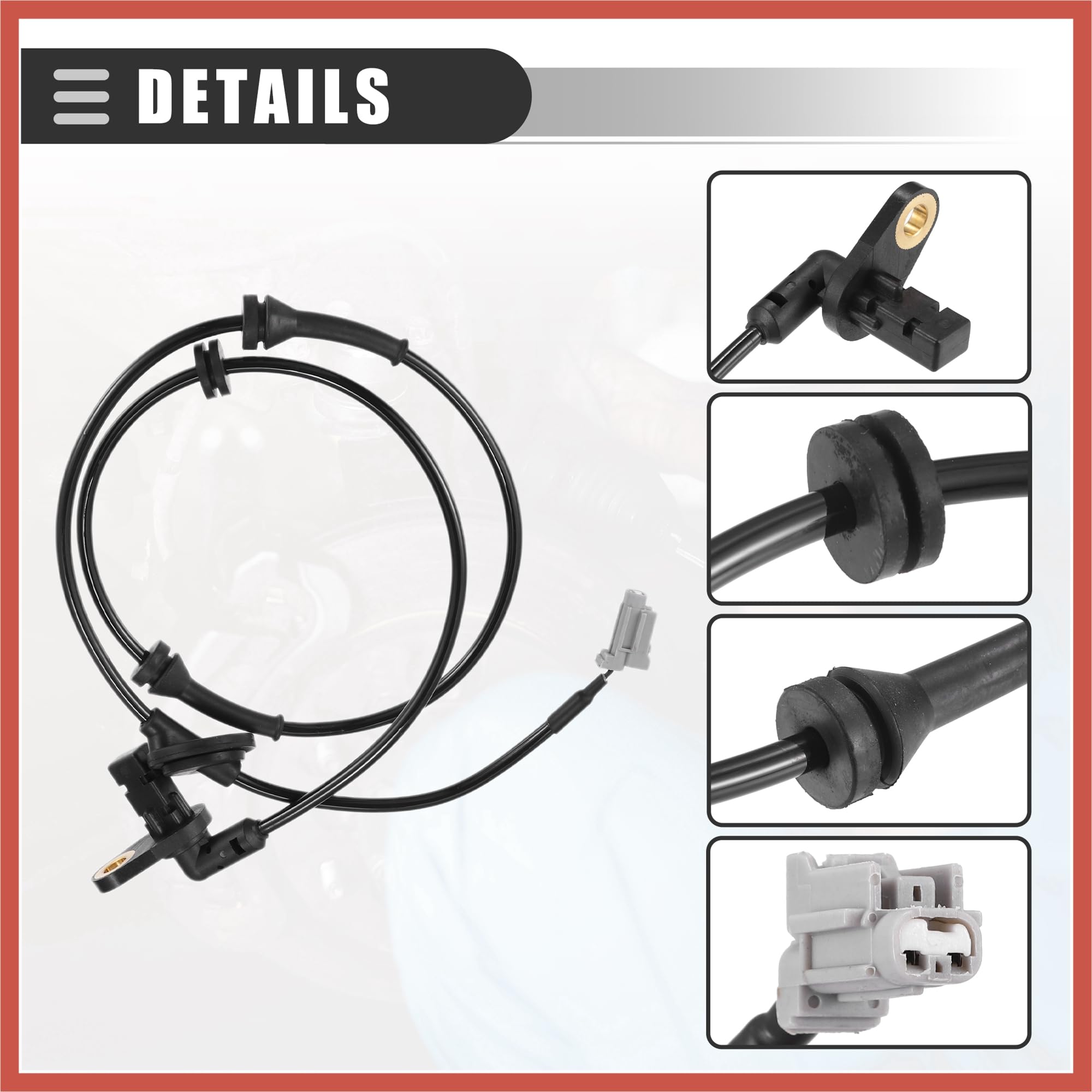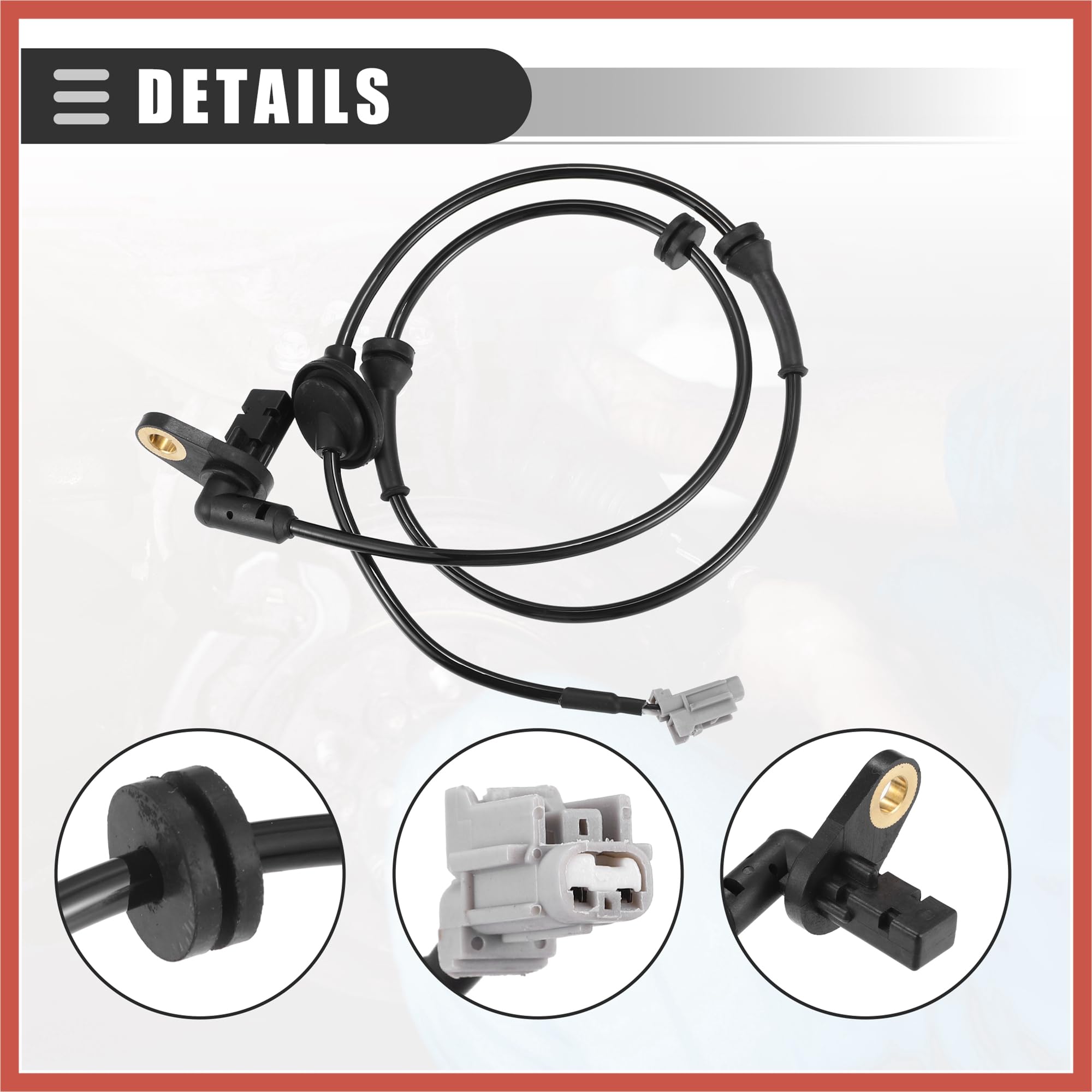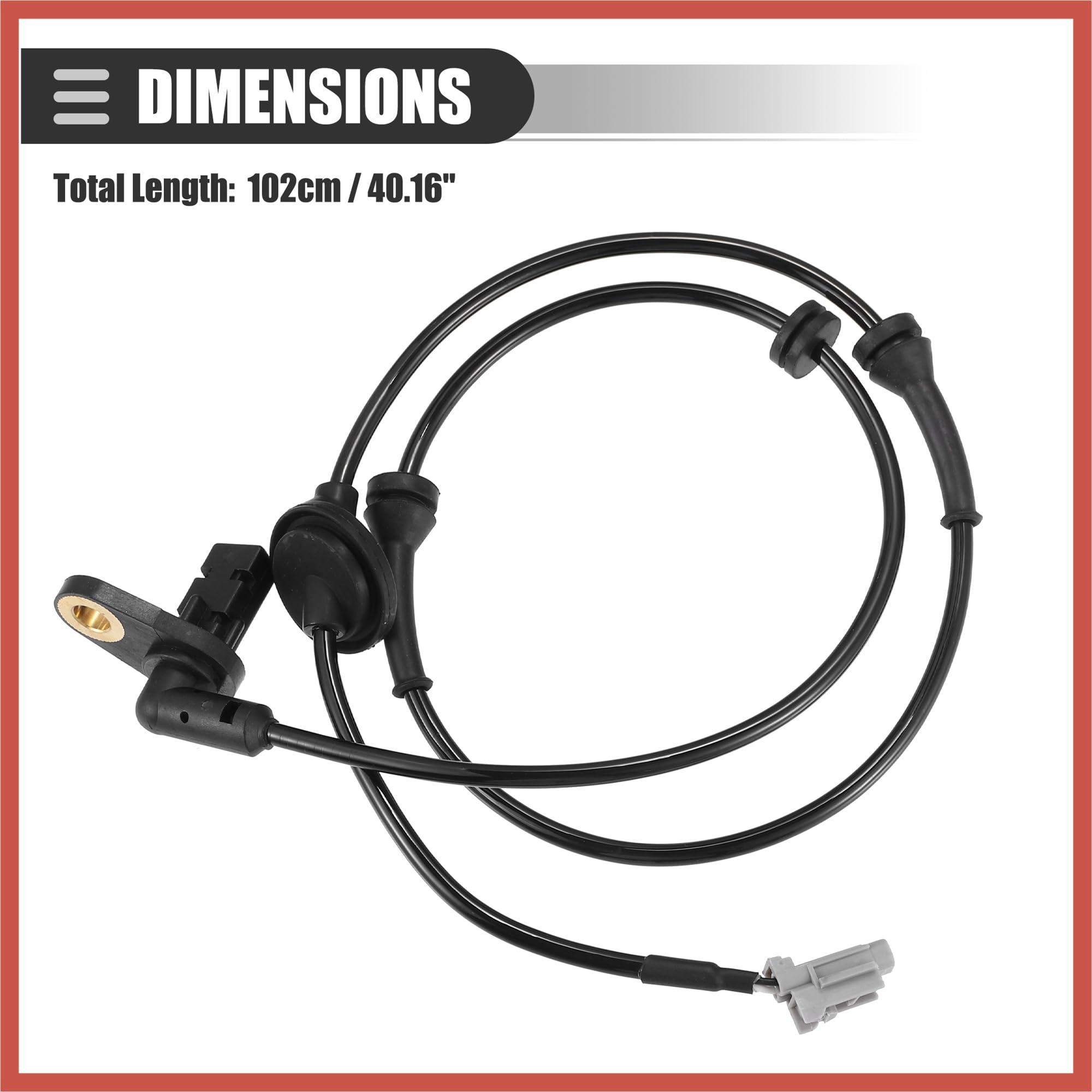 Vehicle Specific Fit: for Nissan X-Trail T30 2003-2007 Product Details: Color: Black Material: Plastic, Metal Total Length: 102cm / 40.16" Hole Diameter: 8.5mm / 0.33" OE Number: 47910EQ010 Advantage: It is designed for smooth flow, easy assembly, longer service life, and ease of adaptability, upgradability, and durability. There is no need to use tools to install that takes too long or other inefficient. Made of quality materials, durable and reliable in use. Not easy to rust, corrode or peel. Kindly Notes: This is a non-OEM product, accessory ONLY! Please carefully check your vehicle model year to ensure you get the correct part. Please allow slight dimension differences due to different manual measurements. Package Content: 1 Pcs ABS Wheel Speed Sensor