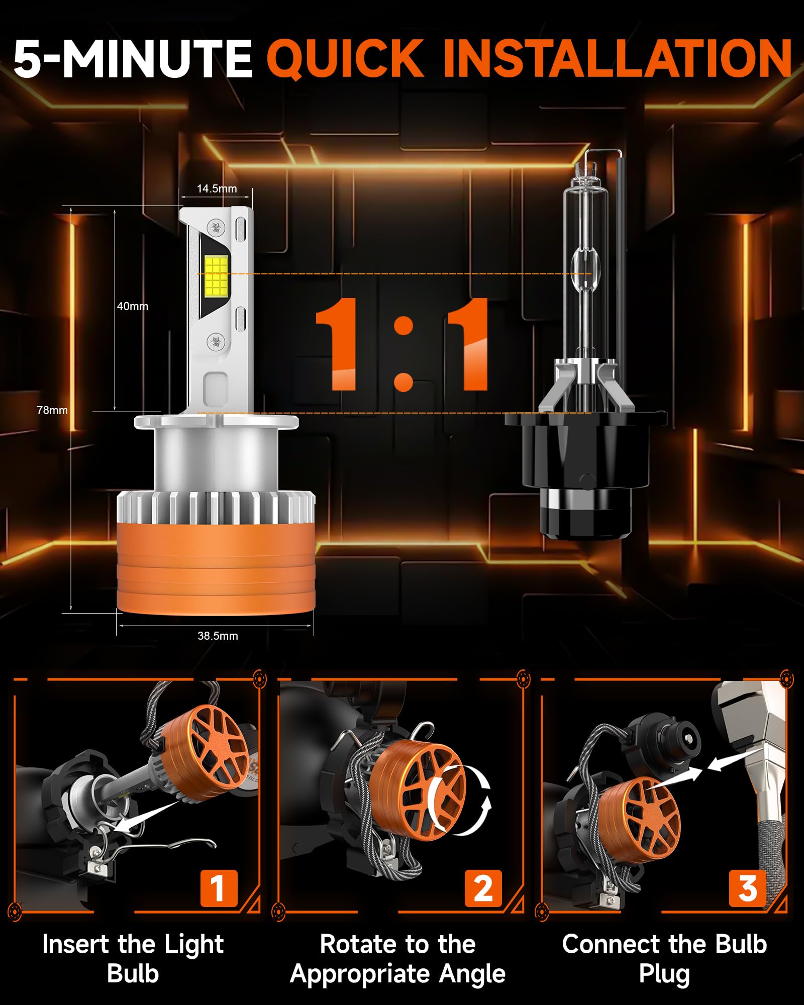 【5Mins Fast Installation】The d2s xenon replacement bulb adopts a 1:1 original car bulb design, which is very easy to install without changing the original car circuit. It can be replaced directly, plug and play, and can be installed within 5 minutes at the fastest