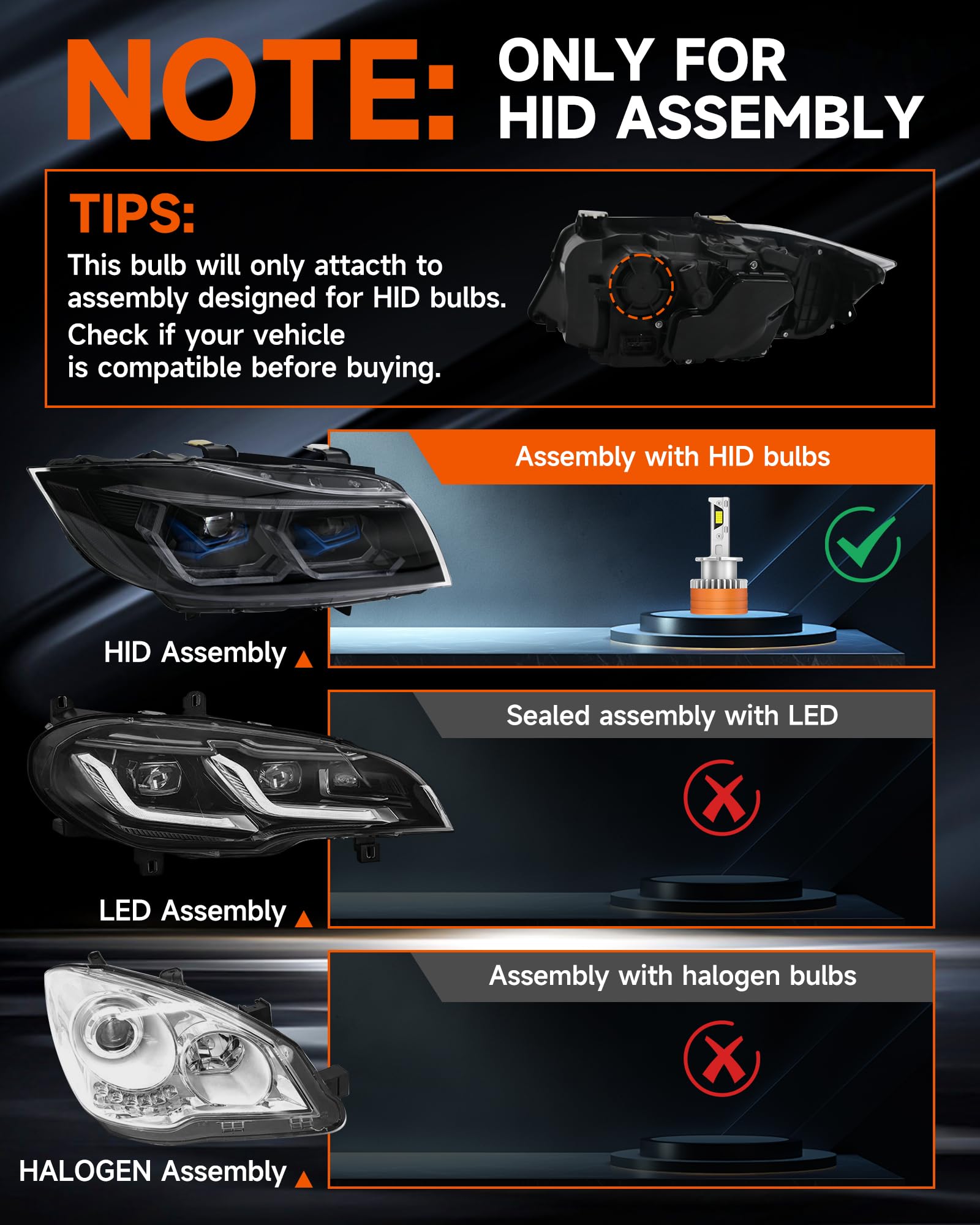 【Canbus Ready】The latest version of d2s bulbs adopt a 4-in-1 decoding design, with built-in intelligent decoding IC, which can work normally without installing another decoder, without errors or flickering