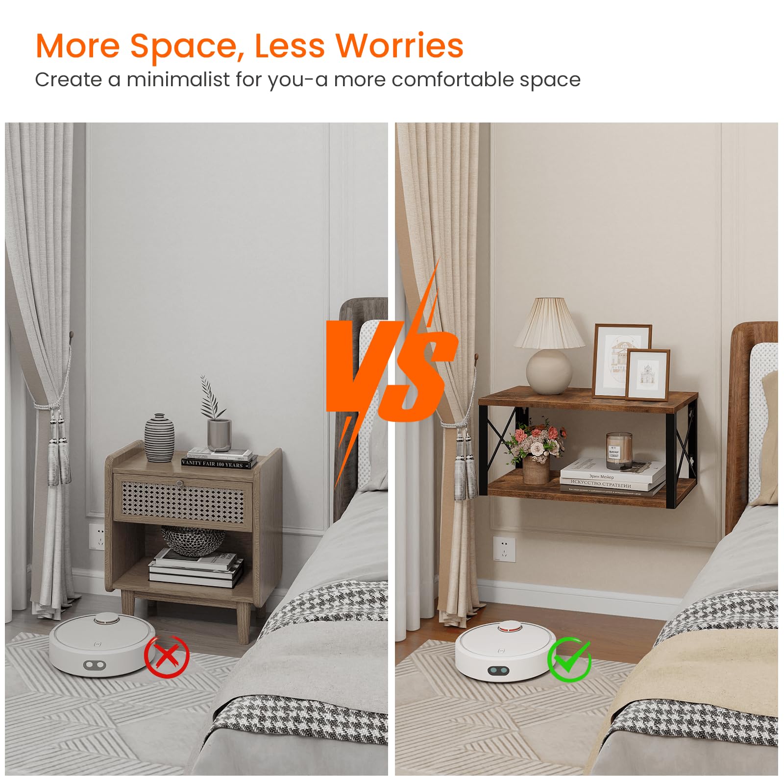Cleaning & Installation Ease: The floating design eliminates hard-to-reach corners, making cleaning a breeze. With simple installation and no need for complex tools, the floating bedside table is easy to create a tidy and stylish bedroom
