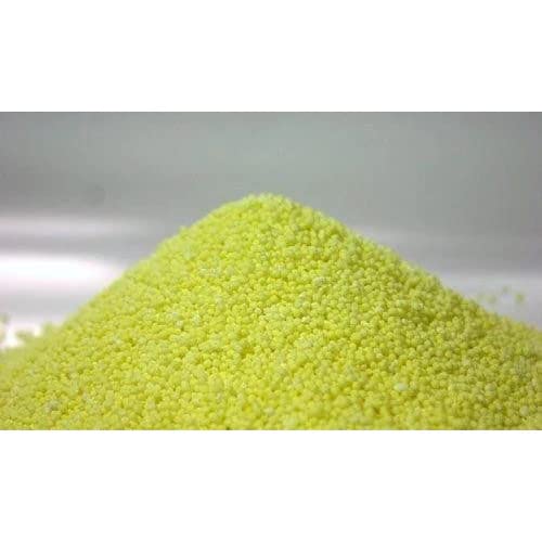 SOIL ACIDIFIER No dust, hard, uniform pellets CONTAINS: 90% Sulfur USE ON: Lawns, shrubs, trees, and before planting vegetables and flowers. FOR: The correction of high pH of soils. RATE: Use 10 to 15 lbs. per 1,000 sq. ft. (1 to 1 1/2 lbs. per 100 sq. ft.) to reduce pH one unit. Do not overdose, have pH checked before making a second application. APPLICATION: Spread evenly over the area and water thoroughly.