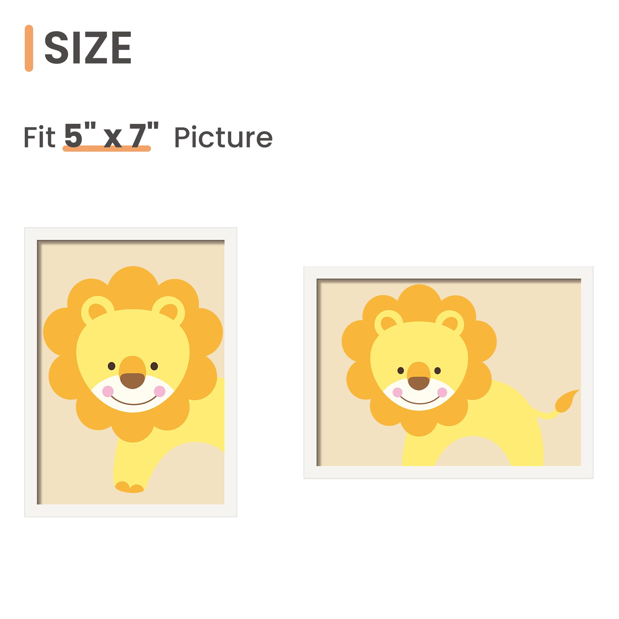 Size: One wall white photo frame fits 5x7 photo without mat, can be hung horizontally or vertically.