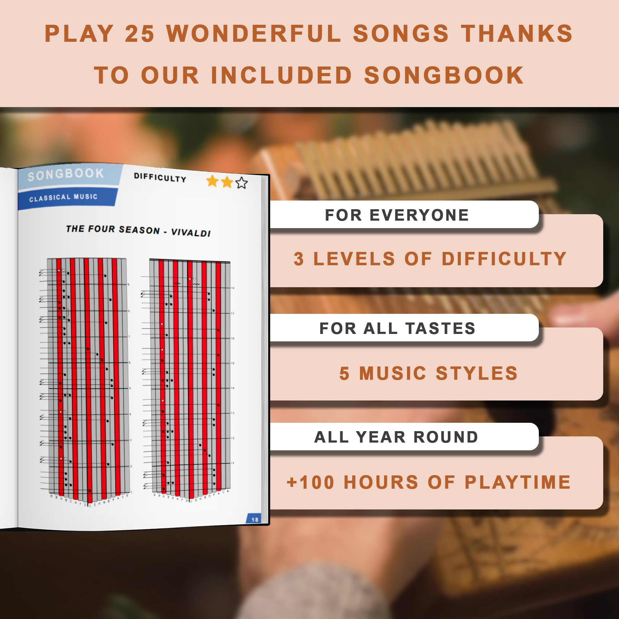 🧘♂️ [ ANTI-STRESS ] Our kalimba is the perfect instrument for relaxation and meditation. Its melodious notes create a soothing, zen-like atmosphere with calming benefits. It will be your ideal companion for moments of tranquility.
