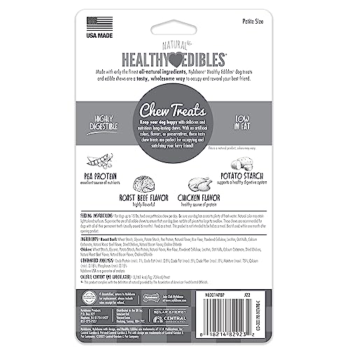 Nylabone Healthy Edibles Natural Dog Chews, Long Lasting Bones for Dogs, Roast Beef & Chicken Flavor Dog Treats, X-Small (8 Count)