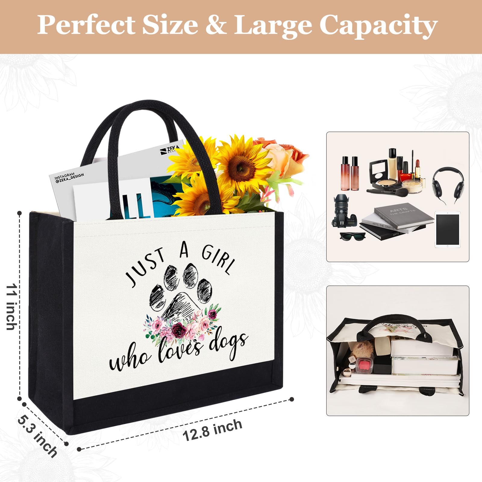 Unique Canvas Tote Bag - Our women tote bag features a adorable dog printing, We use advanced printing technology to ensure that the animal prints on our tote bags are vibrant, long-lasting, and fade-resistant, even after multiple washes and uses. Best dog gift for dog lovers, suitable as a gift for best friends, sisters, mom, daughter, niece, coworkers, granddaughter and so on