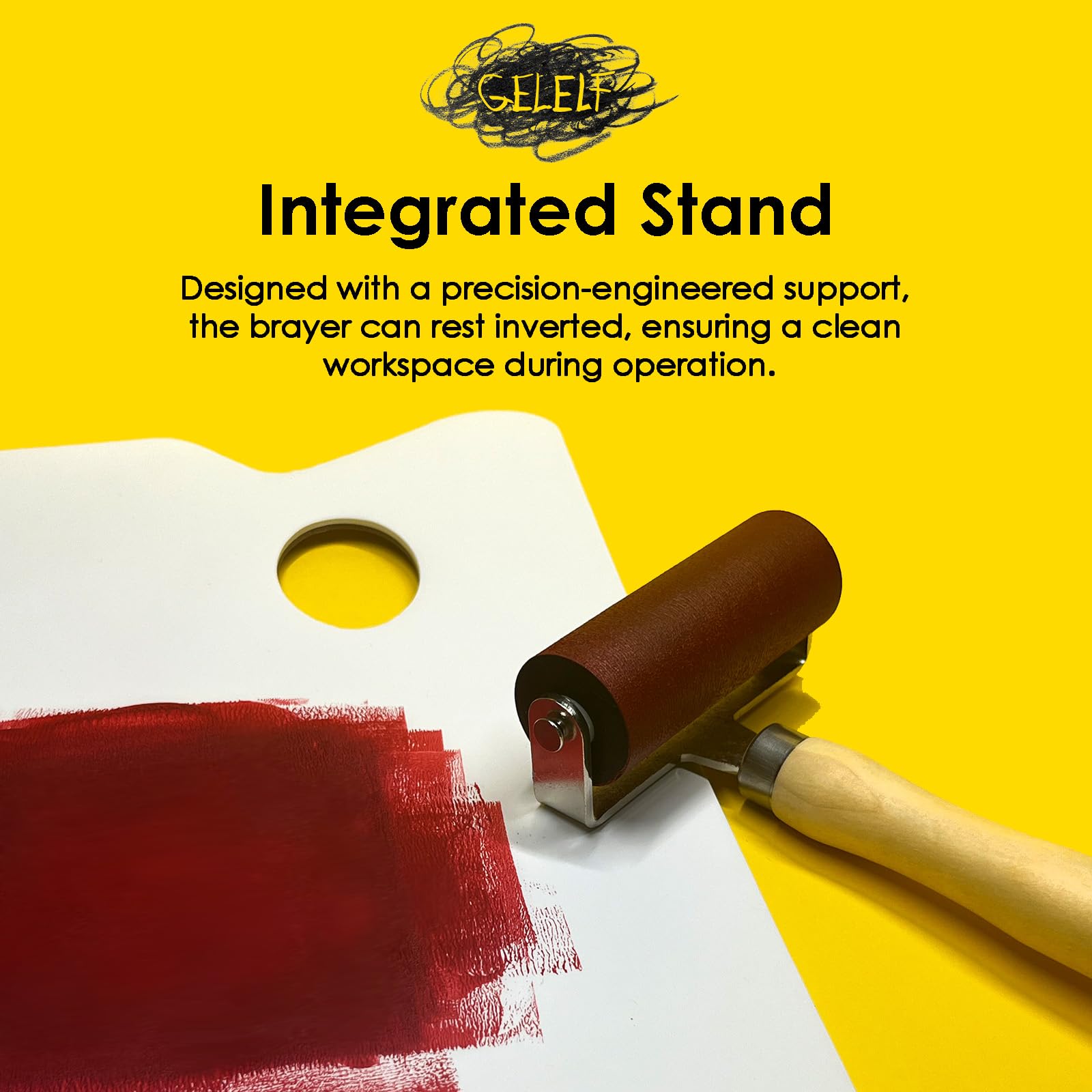 GELELF Smooth Peeling Brayer Roller The perfect brayer for flawless prints and hassle-free maintenance. 【Quality & Durable】 This brayer set features quality solid rollers, a sturdy stainless steel frame, and ergonomic non-slip wood handles. These brayers are smooth, flexible, and designed for long-term use, ensuring effortless ink application. 【Versatile Sizes】 Includes 8 sizes: #1(0.5"/1.2CM), #2(1"/2.2CM), #3(1.5"/3.5CM), #4(2"/5CM), #5(3"/8CM), #6(4"/10CM), #7(6"/15CM), #8(8"/20CM) to suit various needs. The different sizes are ideal for efficient inking, as each roller is slightly larger than typical printing areas, making them perfect for diverse printmaking projects. 【Innovative Roller Surface】 Designed with an advanced surface that allows dried acrylic paint to peel off effortlessly, making cleanup quick and hassle-free. This feature helps maintain cleanliness and ensures the brayers stay in excellent condition for repeated use. 【Wide Applications】 Ideal for gel plate printing, linoleum, soft block, woodworking, inking blocks, printmaking, stamping, carved surfaces, scrapbooking, paintings, paper crafts, and home decor projects. 【Simple to Use & Maintain】 Rollers glide smoothly with minimal effort, distributing ink or glue evenly. Cleaning is effortless—wash with soap and warm water, then dry with a towel for reuse. Your new favorite crafting companion: clean, sleek, and ready for every project!
