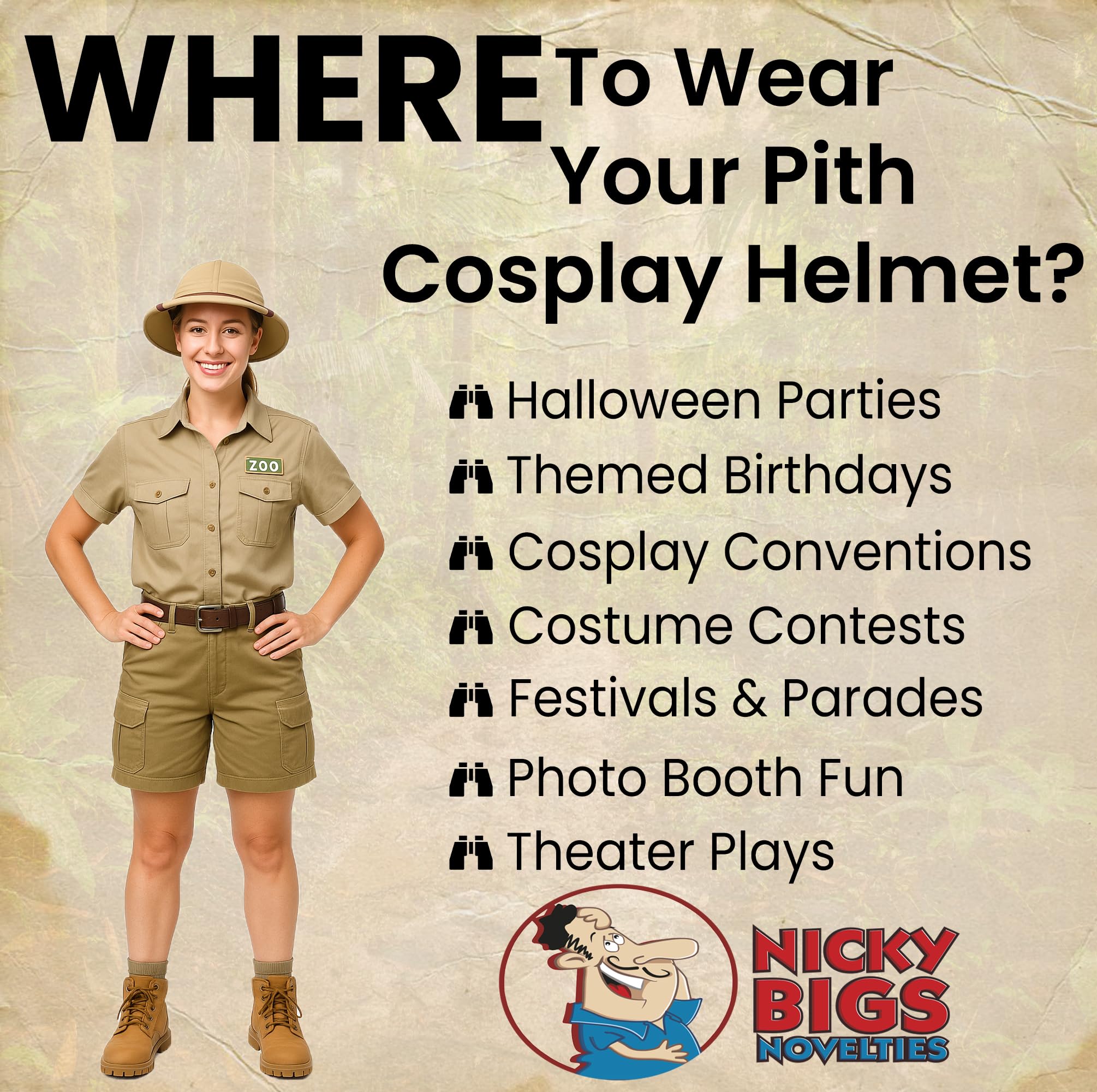 VERSATILE DESIGN FOR VARIOUS OCCASIONS Whether on a safari, working as a tour guide, or dressing as a zookeeper, this hat completes the look. Ideal for jungle explorers, reenactments, beekeepers, rainforest parties, animal hunters, and more. A versatile accessory for themed events and Halloween costumes.
