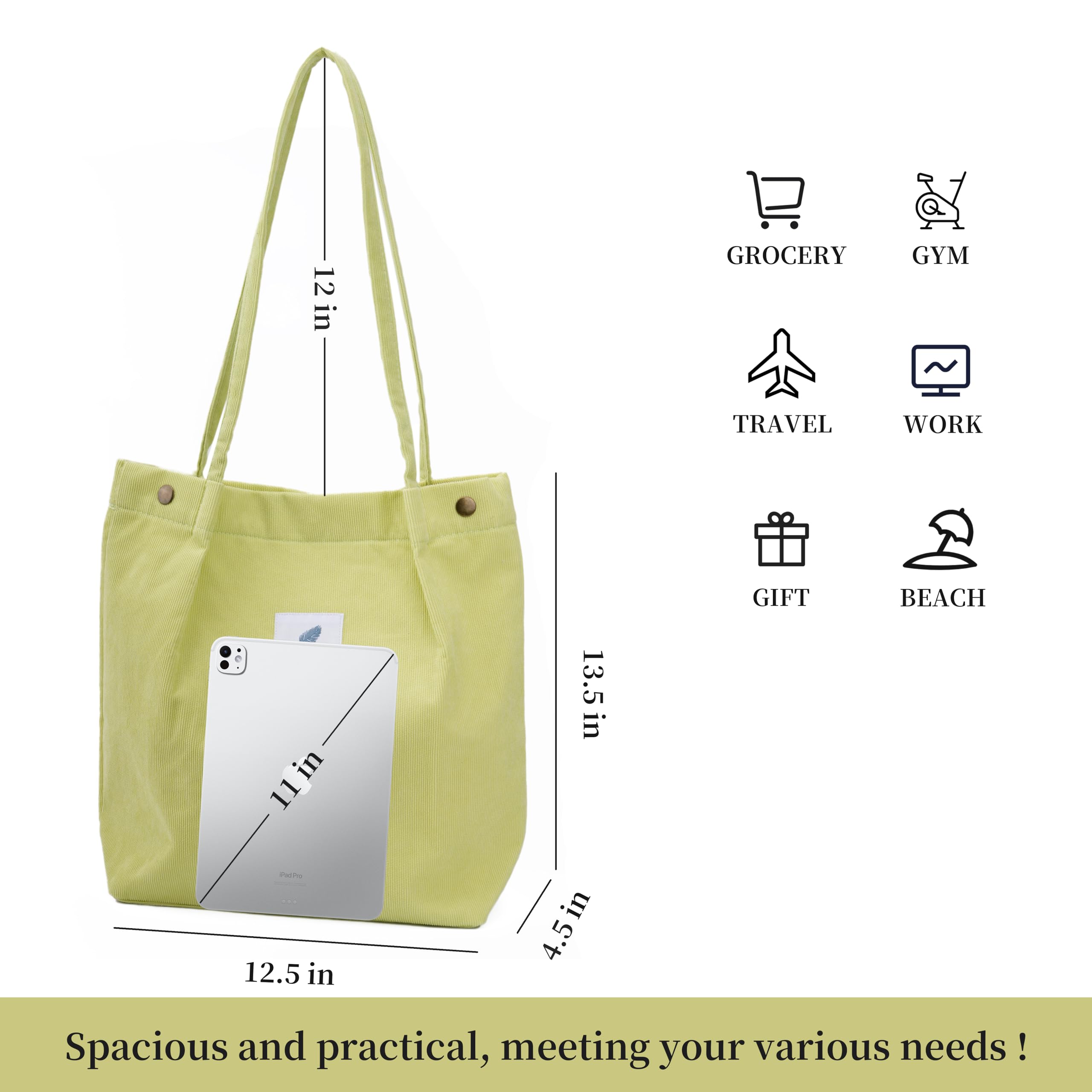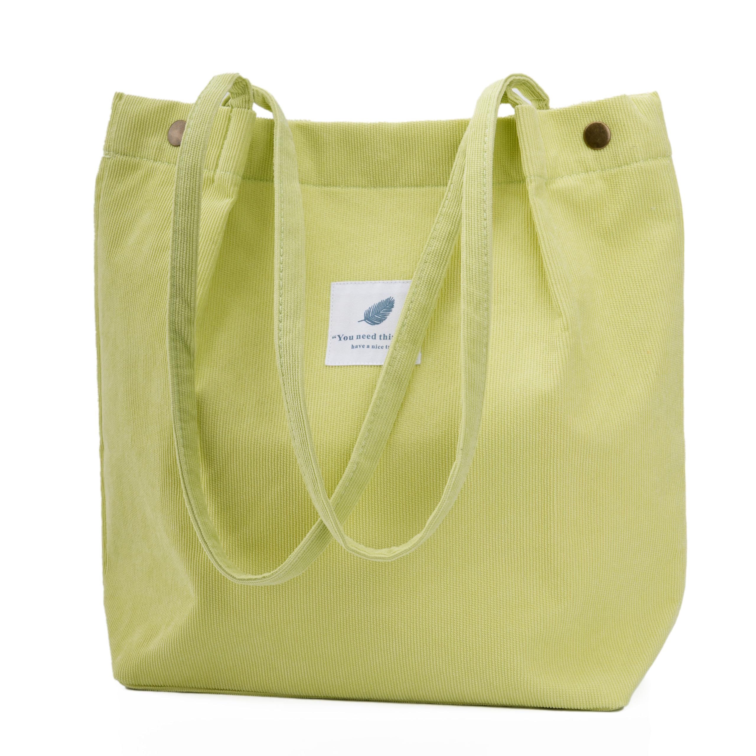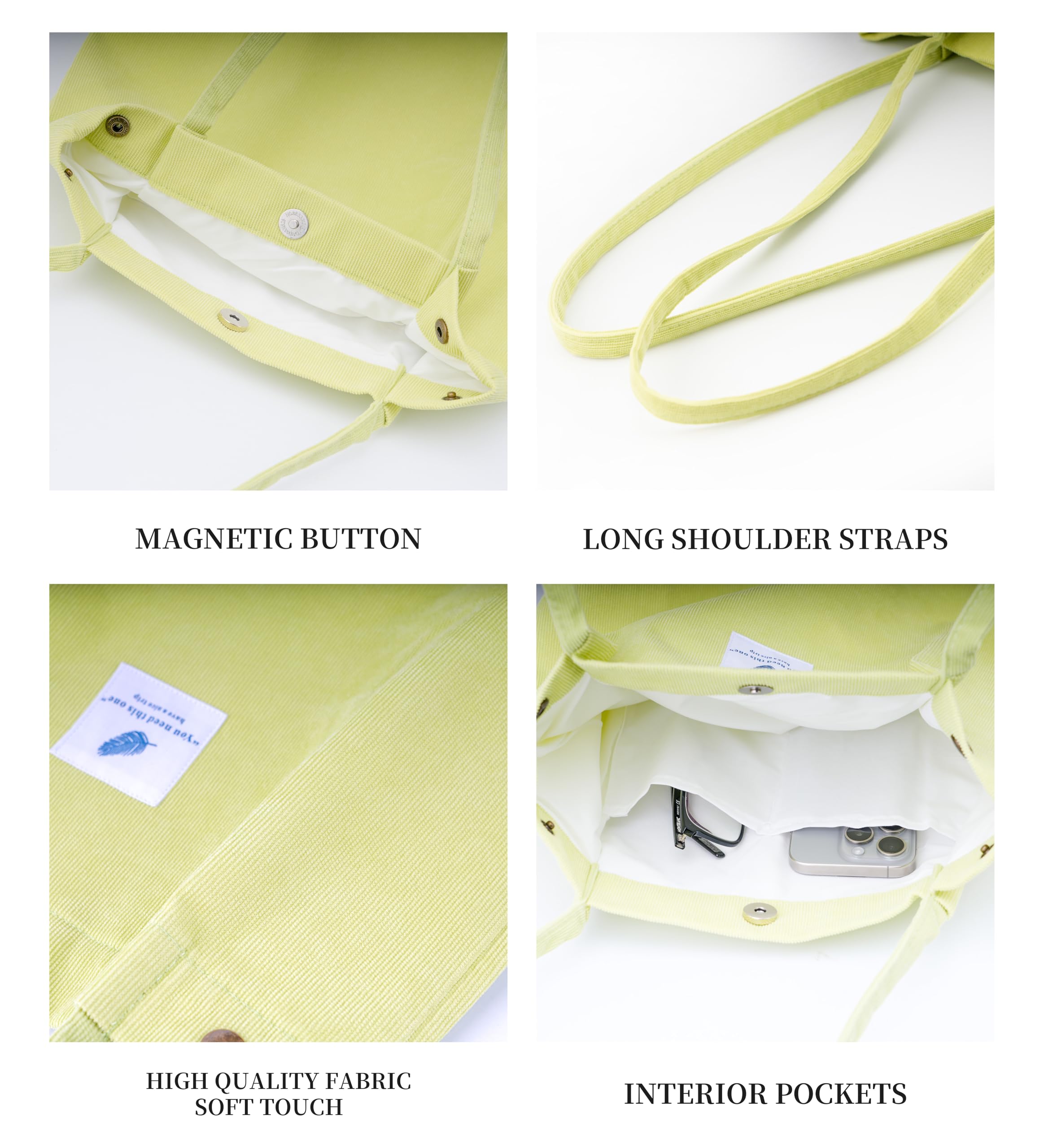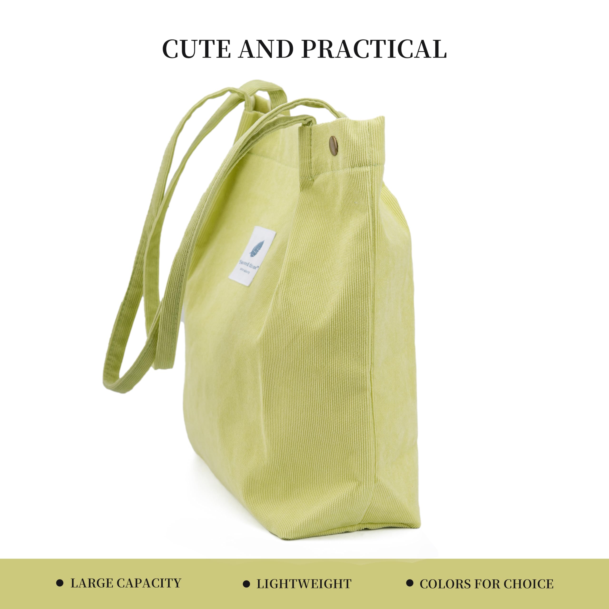 HIGH QUALITY: The tote bag is made of sturdy corduroy fabric, soft and warm to the touch, with reinforced shoulder straps, very strong and durable, smooth lining, very easy to clean and can be used repeatedly for a long time.