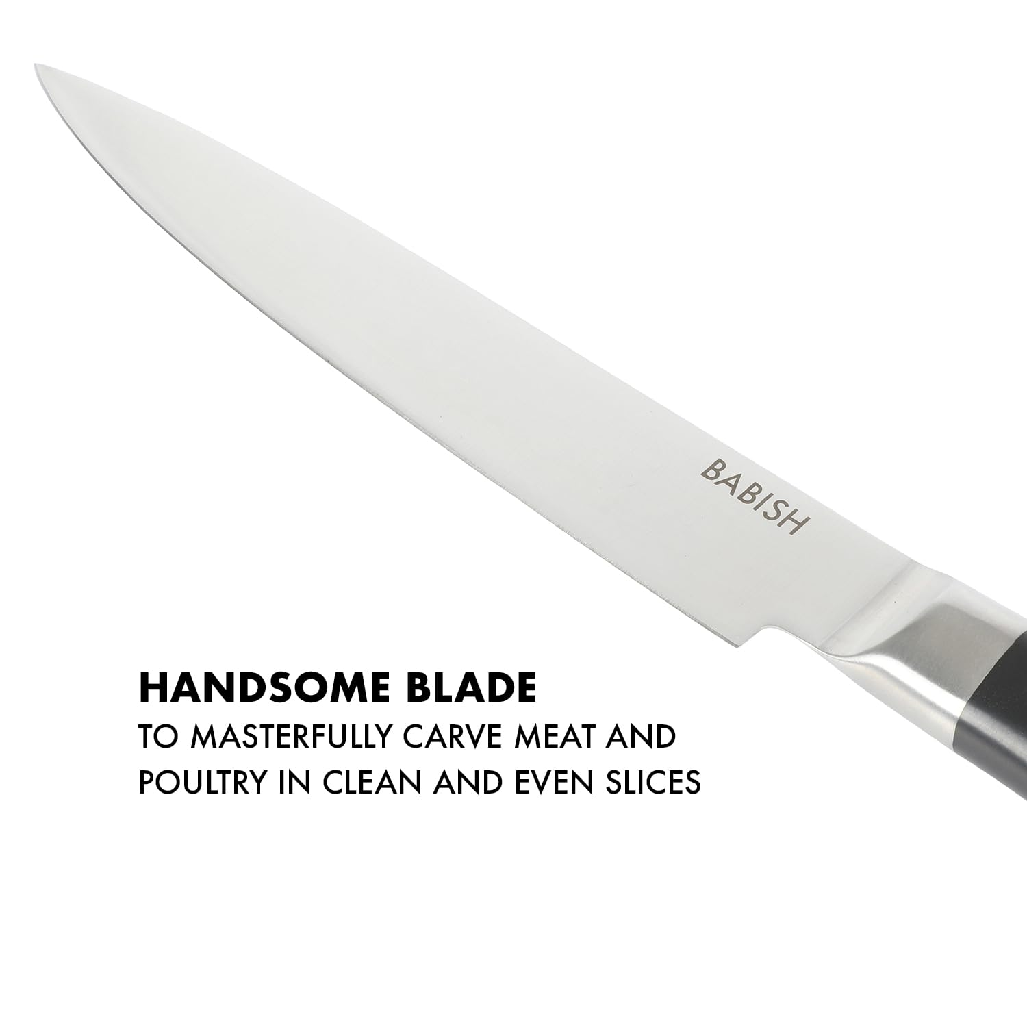Handsome blade to masterfully carve meat and poultry in clean and even slices