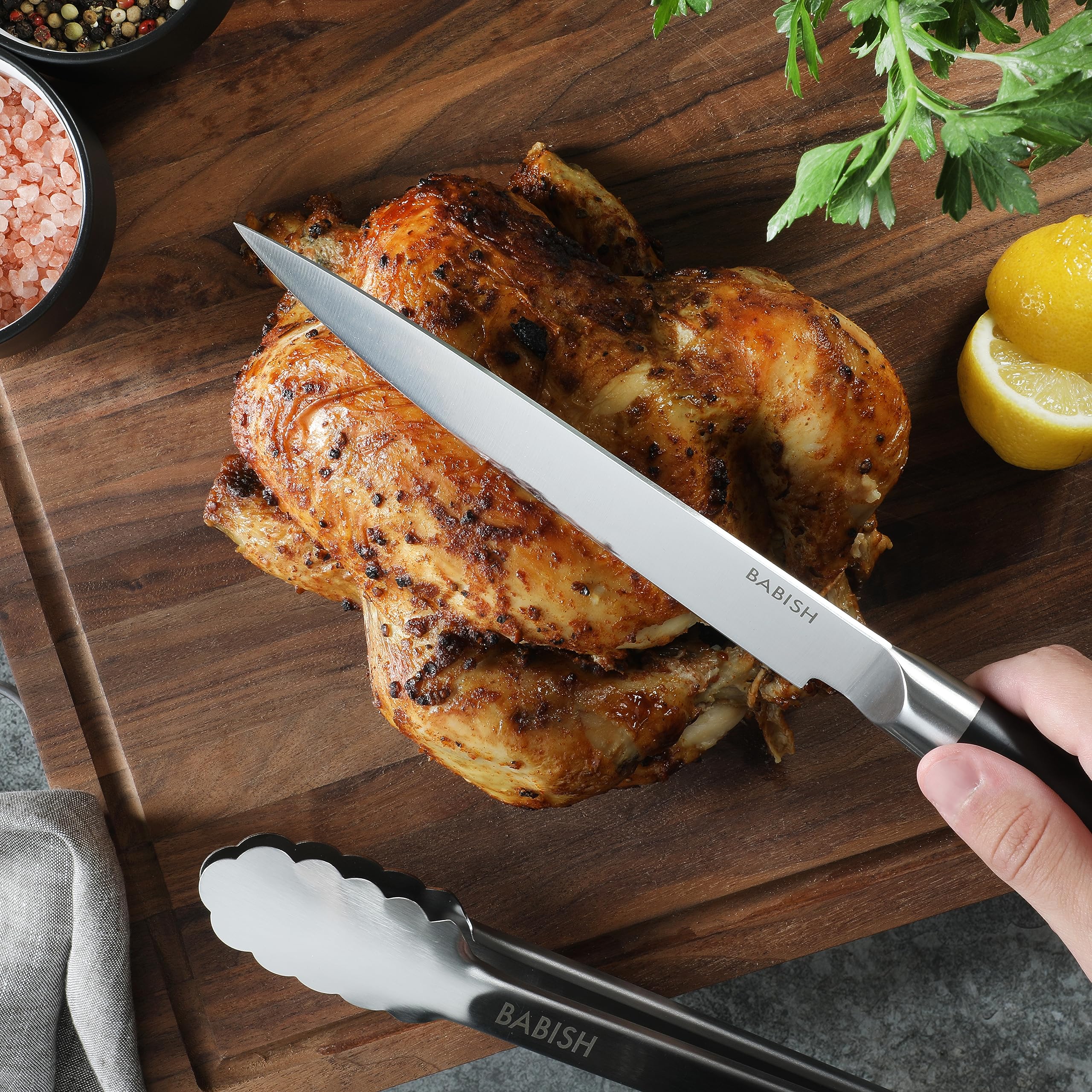 The Babish 8-inch German Steel Carving Knife glides through dense meats to serve up clean cuts with ease and finesse like a pro. Constructed from high-carbon, 1.4116 German steel, the sharp, full-tang blade offers ultimate sharpness and precision to slice through dense meats of glazed ham, roast beef, Thanksgiving turkeys, and more. The double-bolstered handle provides strength and balance for improved control, especially when cutting through a turkey carcass or a crown roast. Perfect for everyday use and special occasions, this precision-forged knife is easy to clean and maintain. Hand wash only. Towel dry immediately. Andrew Rea is one part chef, one part filmmaker, and a generous dash of irreverent Youtube personality. Self-taught both behind and in front of the camera, his Youtube channel, Babish Culinary Universe, is enjoyed by millions of burgeoning chefs and foodies around the globe. His passion for teaching and experimenting in the kitchen is rivaled only by his love of film and television, both of which he endeavors to share from his Brooklyn, NY kitchen.