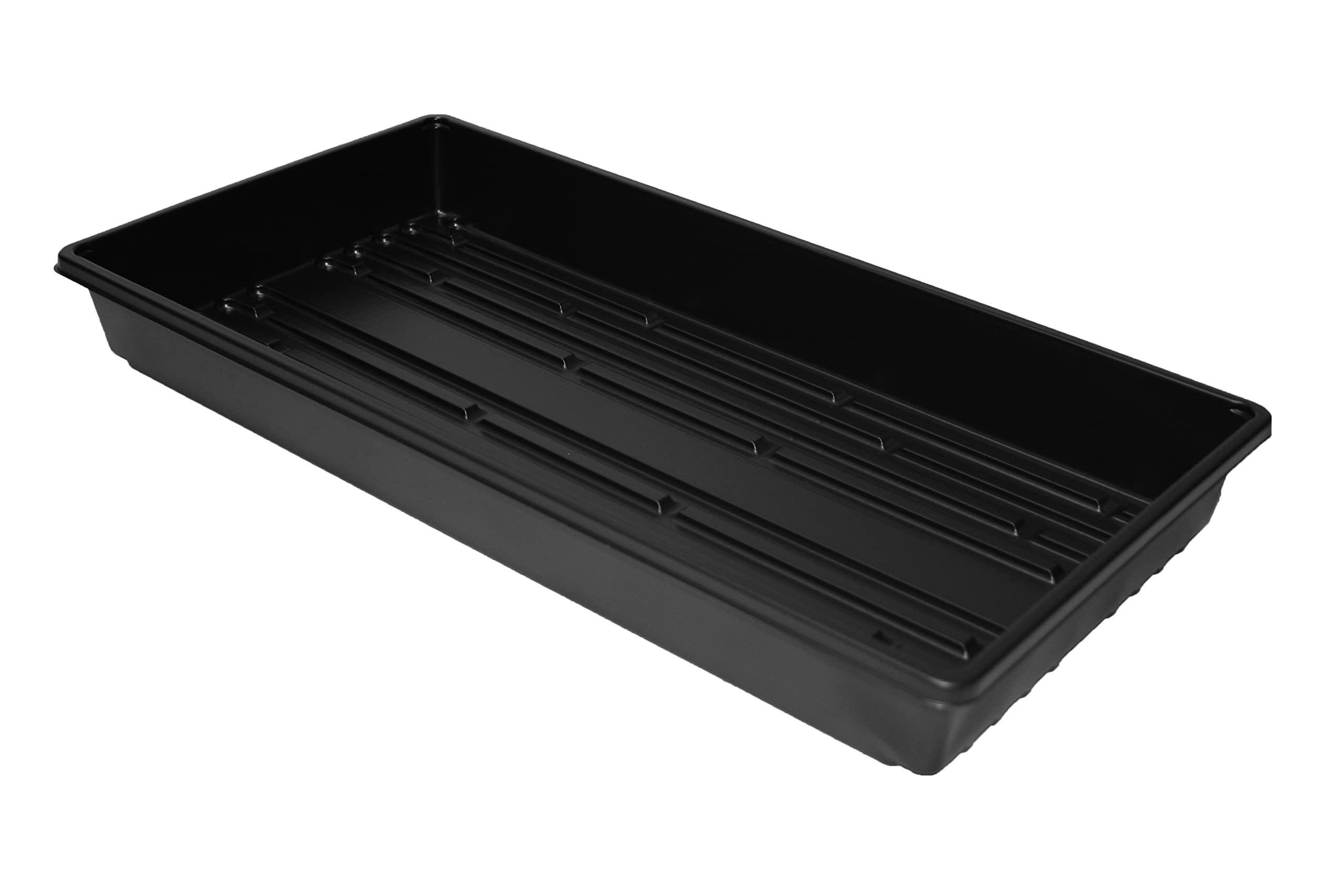 Black Plastic Gardening Trays with NO drain holes. br> Growing Trays can be reused over and over again. Perfect for growing wheatgrass, starting seedlings, growing microgreens in soil & more. Sturdy black plastic. Precise fit for Sure to Grow pads and Micro-Mats hydroponic pads. Tray is wider in the mouth (top of tray) and tapers to the base (bottom of tray). Top of Tray - Exact Dimensions: - 20.5 Inches Long (522 mm) - 10 1/8th Inces Wide: (255 mm) Bottom of Tray - Exact Dimensions: - 19 7/8th Inches Long (504 mm) - 9 3/8th Inces Wide: (238 mm) Depth of Tray - Exact Dimensions - 2 3/8th Inches Deep (60 mm)