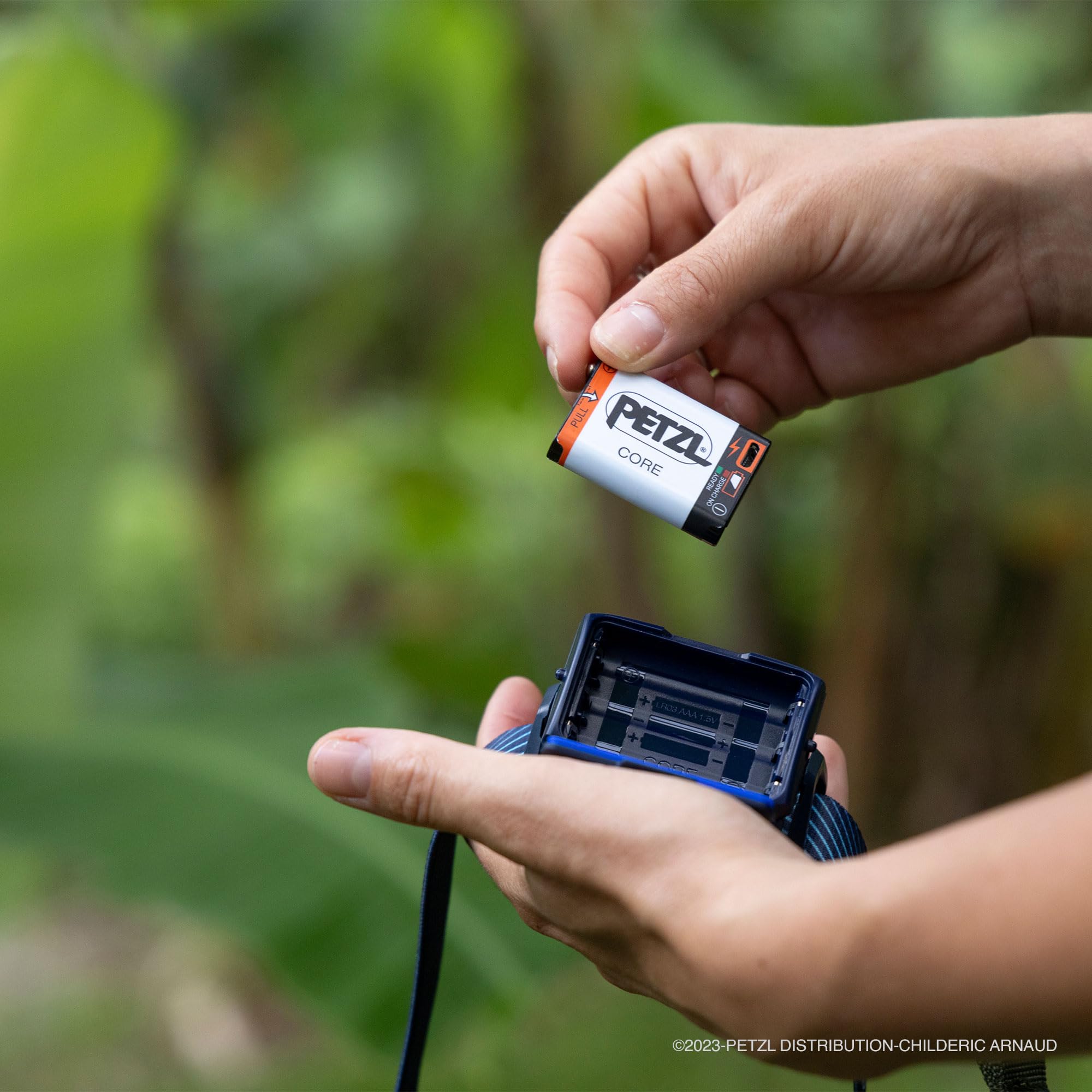 HYBRID CONCEPT: Petzl headlamps can run on either the CORE rechargeable battery or three AAA batteries without an adapter.