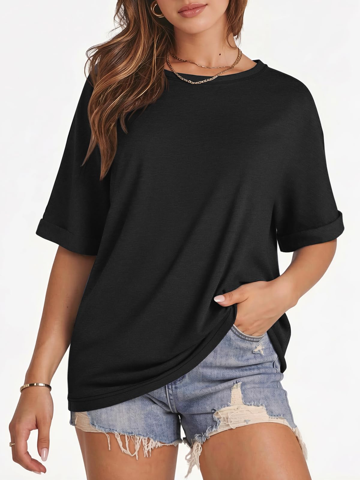 Features: Plus Size,Casual Crew Neck, Rolled Sleeves Design-Adds a Nice Little Details to the Simple Tee, Plain Basic T Shirts. Perfect to Wear in all Seasons.