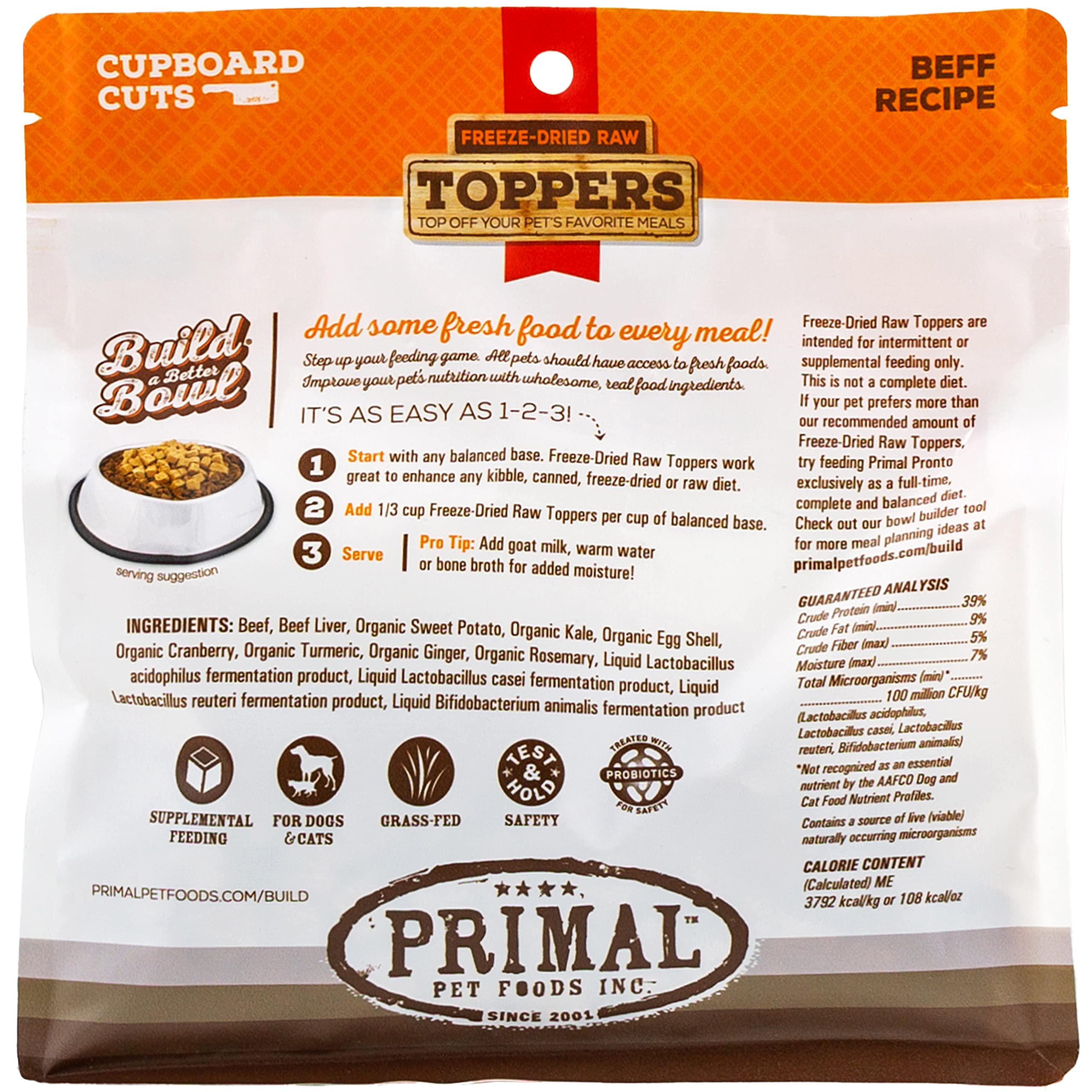 Irresistible cat & dog food toppers for picky eaters, cats & dogs of all life stages, and great as freeze dried cat treats & freeze dried dog treats. Intended for intermittent or supplemental feeding