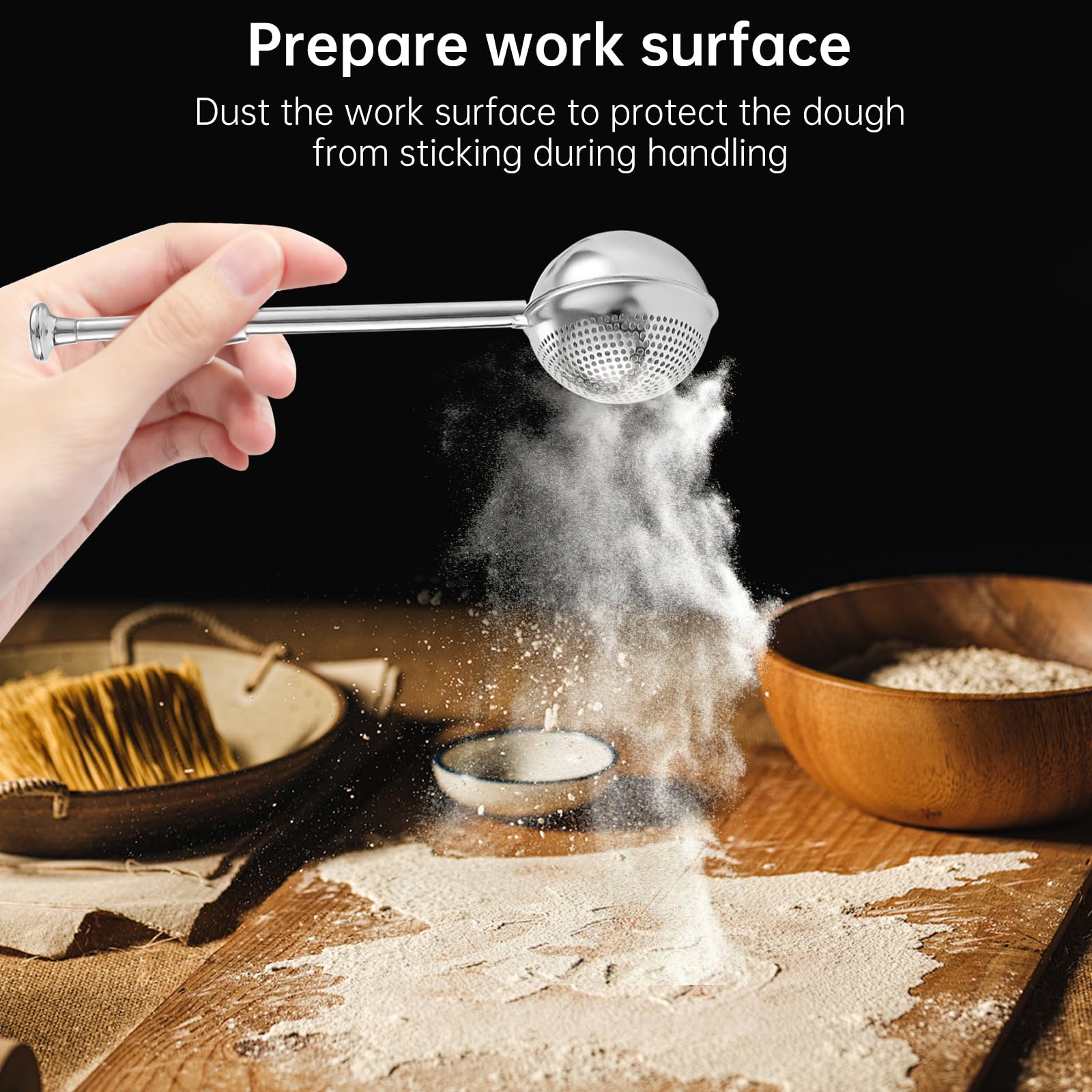 Ideal for Bread and Pastry Makers: This flour sifter for sourdough bread and bakers dusting wand is a must-have tool for any baker. It is perfect for sprinkling flour onto your bread dough or dusting flour shaker duster on pastries. Its compact size and precision control make it ideal for both professional and home bakers