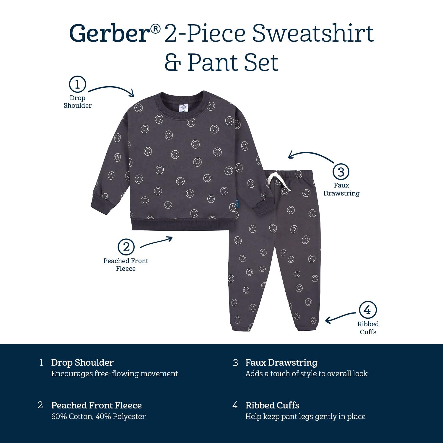 Description Make every day cozy with our charming baby or toddler matching outfit! Crafted from very soft poly fleece, this ensemble is a cuddle-worthy addition to any wardrobe. Perfect for cooler weather, the top and matching pants keep your little one feeling warm and looking stylish all season long. Designed for comfort, the set features comfort stretch material at the neckline, wrists, waist, and ankles, allowing your little one to move with ease while at play. And with decorative twill tape on the pants, this ensemble is the perfect addition to their fall and winter closet!