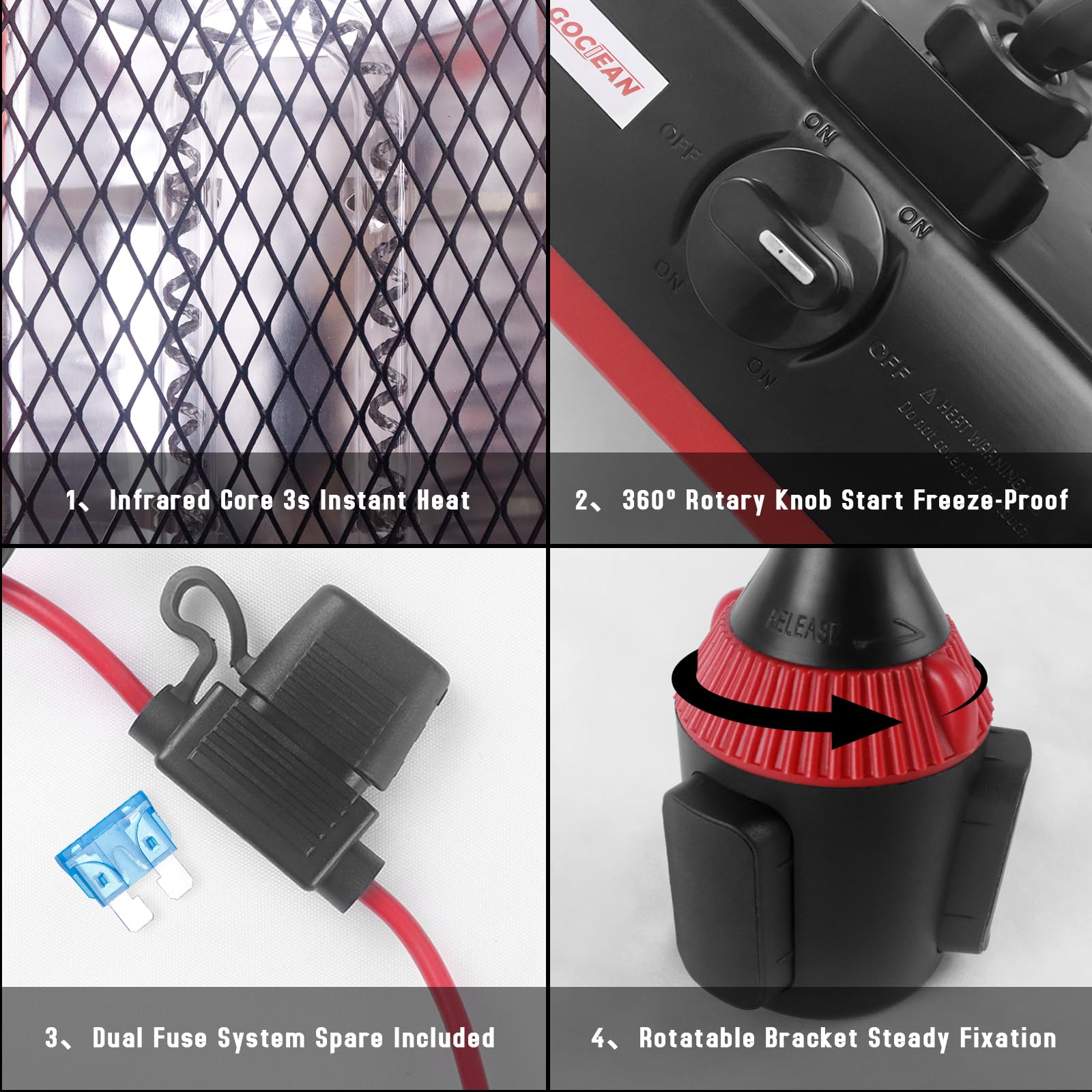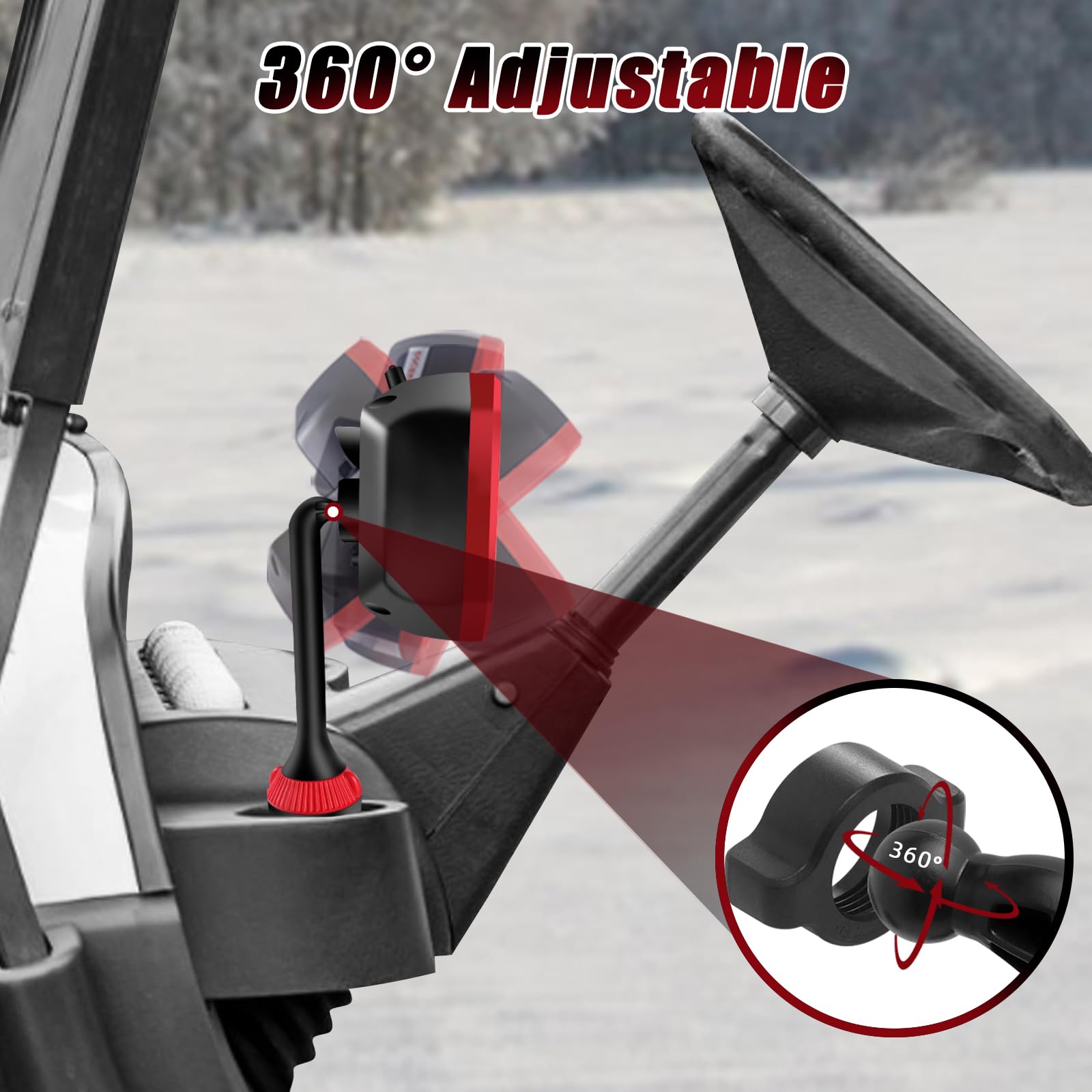 360° Adjustable Rotation –This heater features infinite 360° adjustment, allowing you to precisely target the area you want to warm. The adjustable base securely attaches to your golf cart’s cup holder, keeping the heater stable even while driving