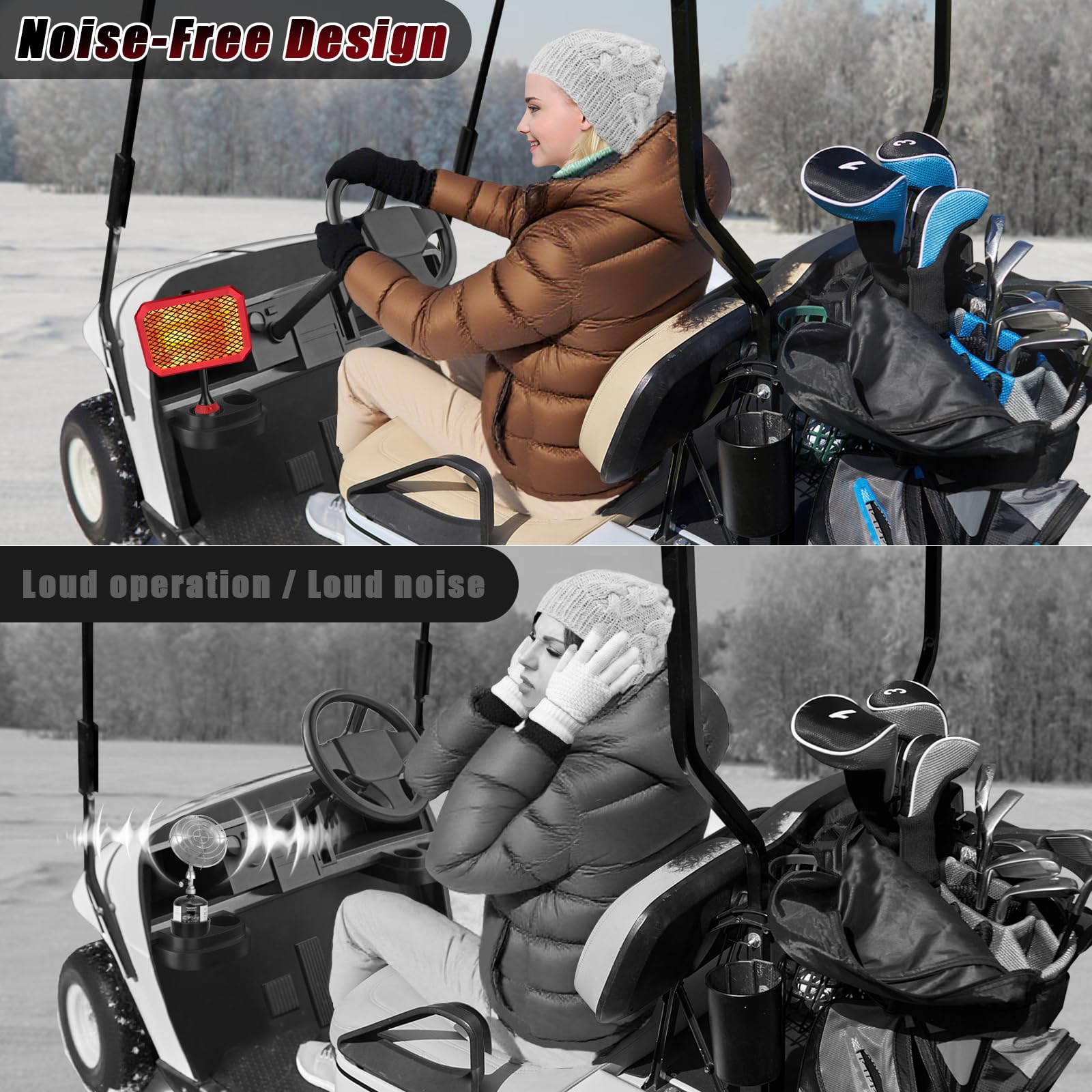 Battery Powered Golf Cart Heater–Simply connect to your golf cart’s battery for instant, zero-emission warmth in just 3 seconds, with ultra-low power consumption of only 0.4 kWh per hour, allowing you to stay comfortable for hours without worrying about draining your battery, and comes with a detailed instruction manual for easy setup