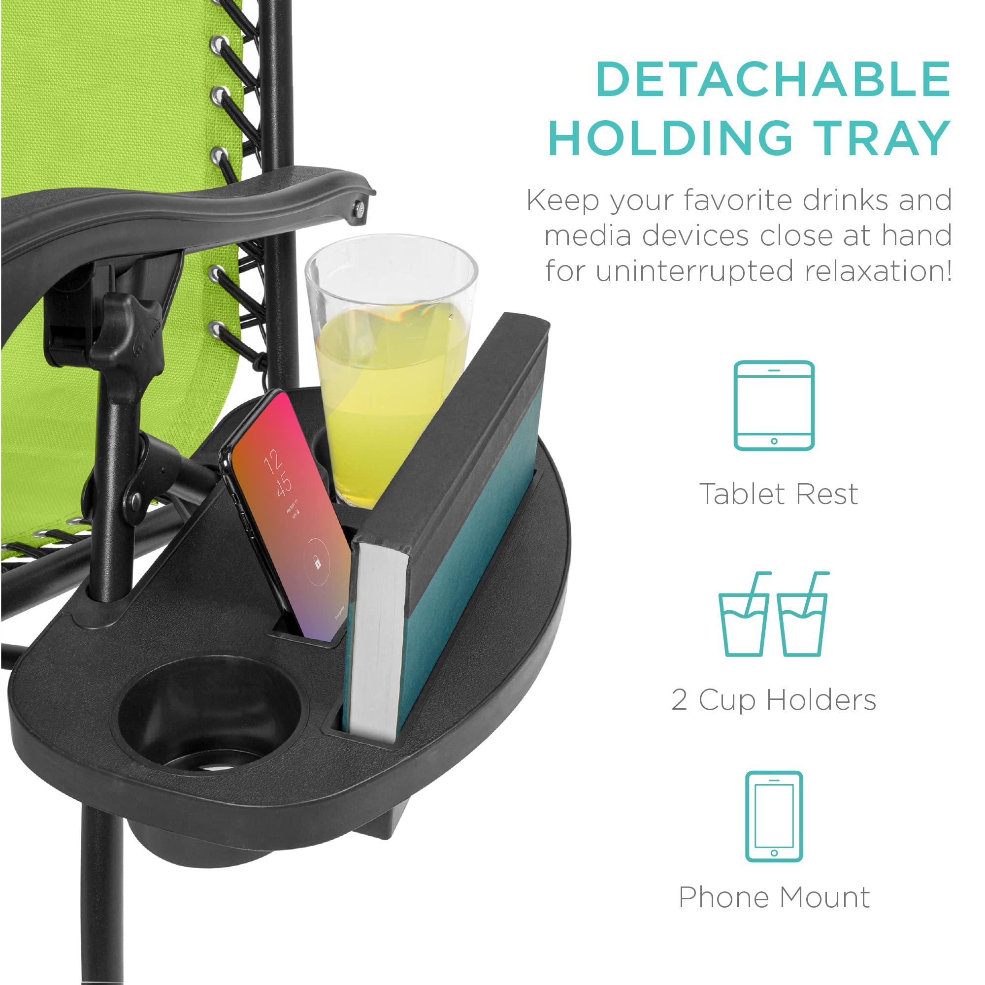 CONVENIENT & DETACHABLE TRAY: Removable tray is built with two cup holders, a phone holder, and a tablet holder so you never have to be far from your favorite drinks or media devices!