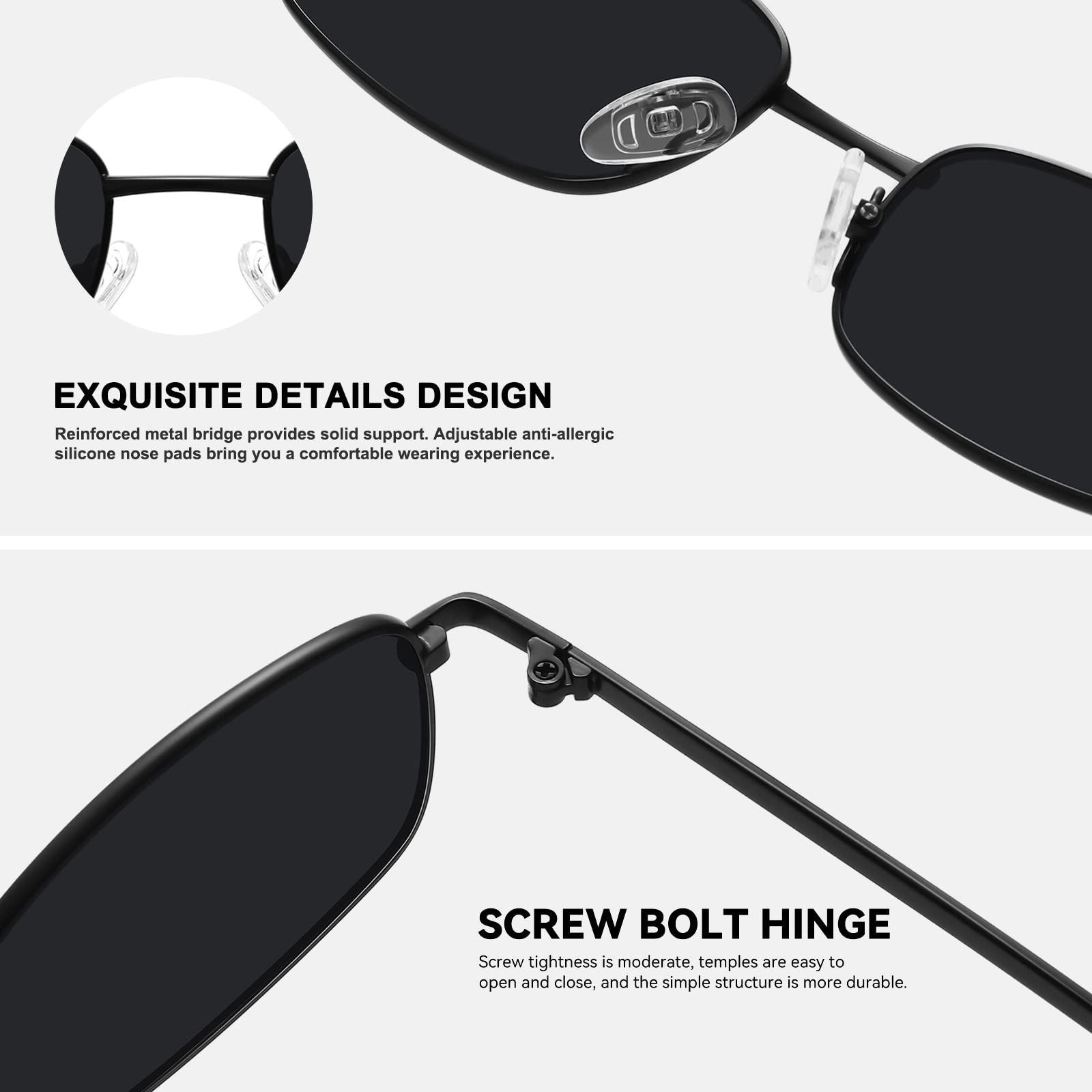 MATERIALS: Made of lightweight metal frame, reinforced metal hinges and integrated nose pads, which makes our vintage rectangle sunglasses. With these Y2k style glasses to parties, shopping, travel, take pictures, you are fashionable existence.