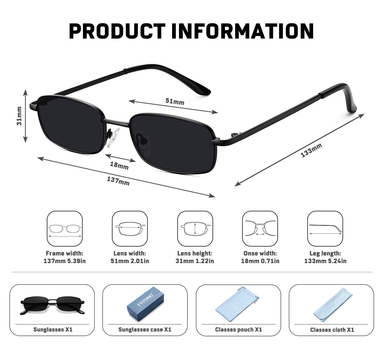 RETRO SMALL SQUARE FRAME: These retro vintage rectangle sunglasses are keeping up closely with the latest fashion trend. The retro narrow square frames can match with various facial shapes. A variety of lens colors can go with different outfits in a daily fashion.