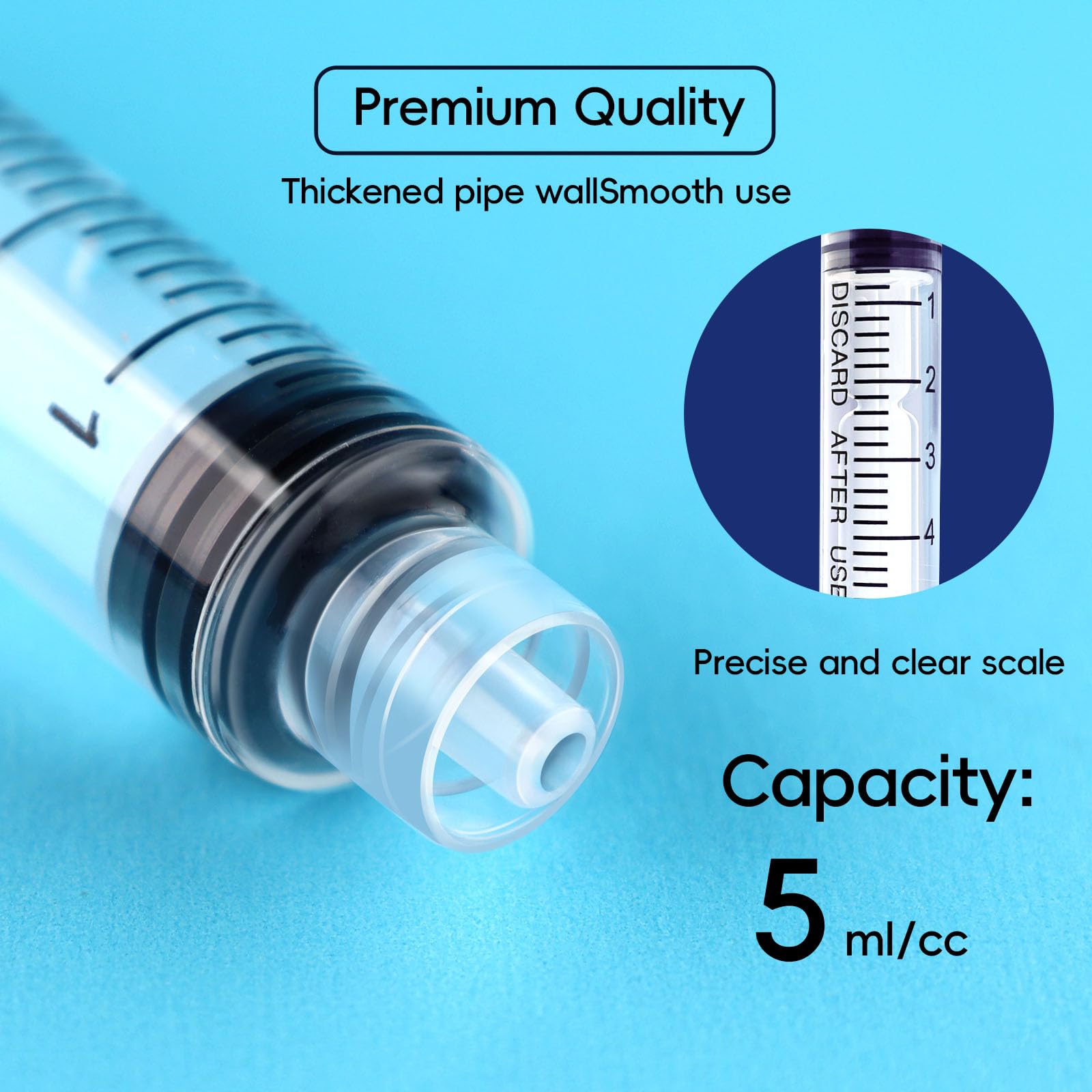 5 ml Syringe Precise Scale Design: The transparent barrel of the luer lock syringe features clear scale markings for easy and accurate measurement of 5ML liquids