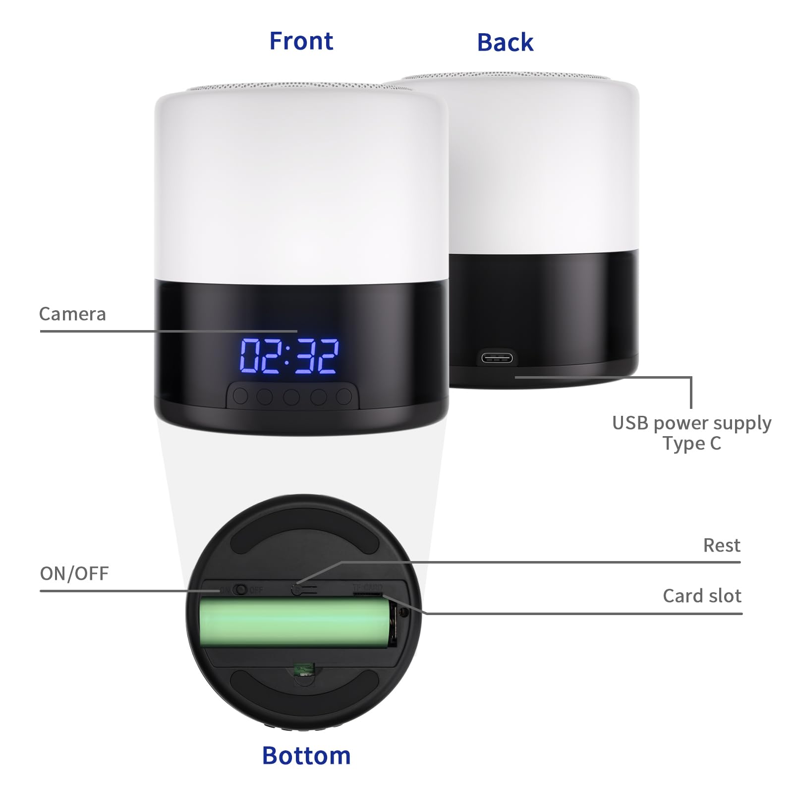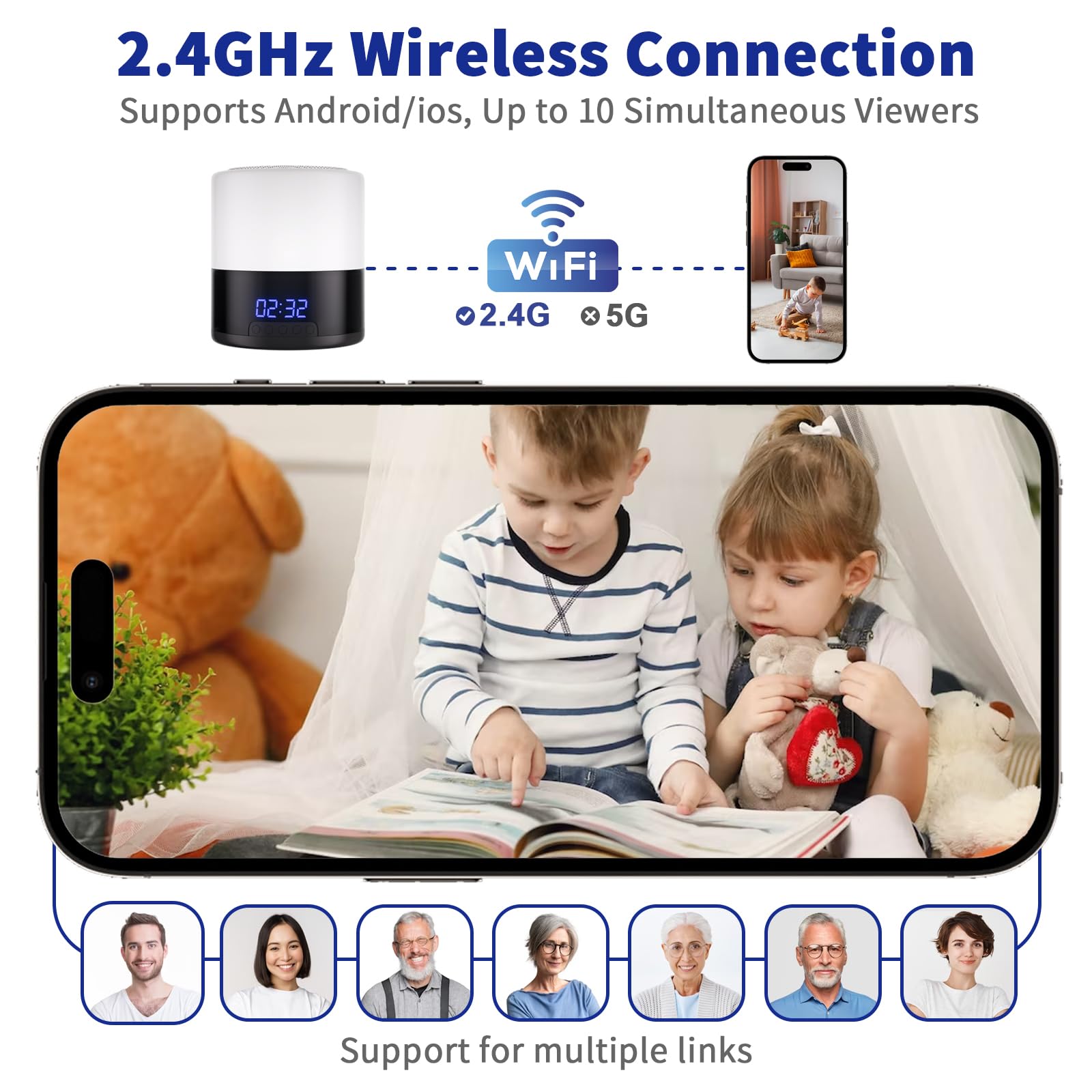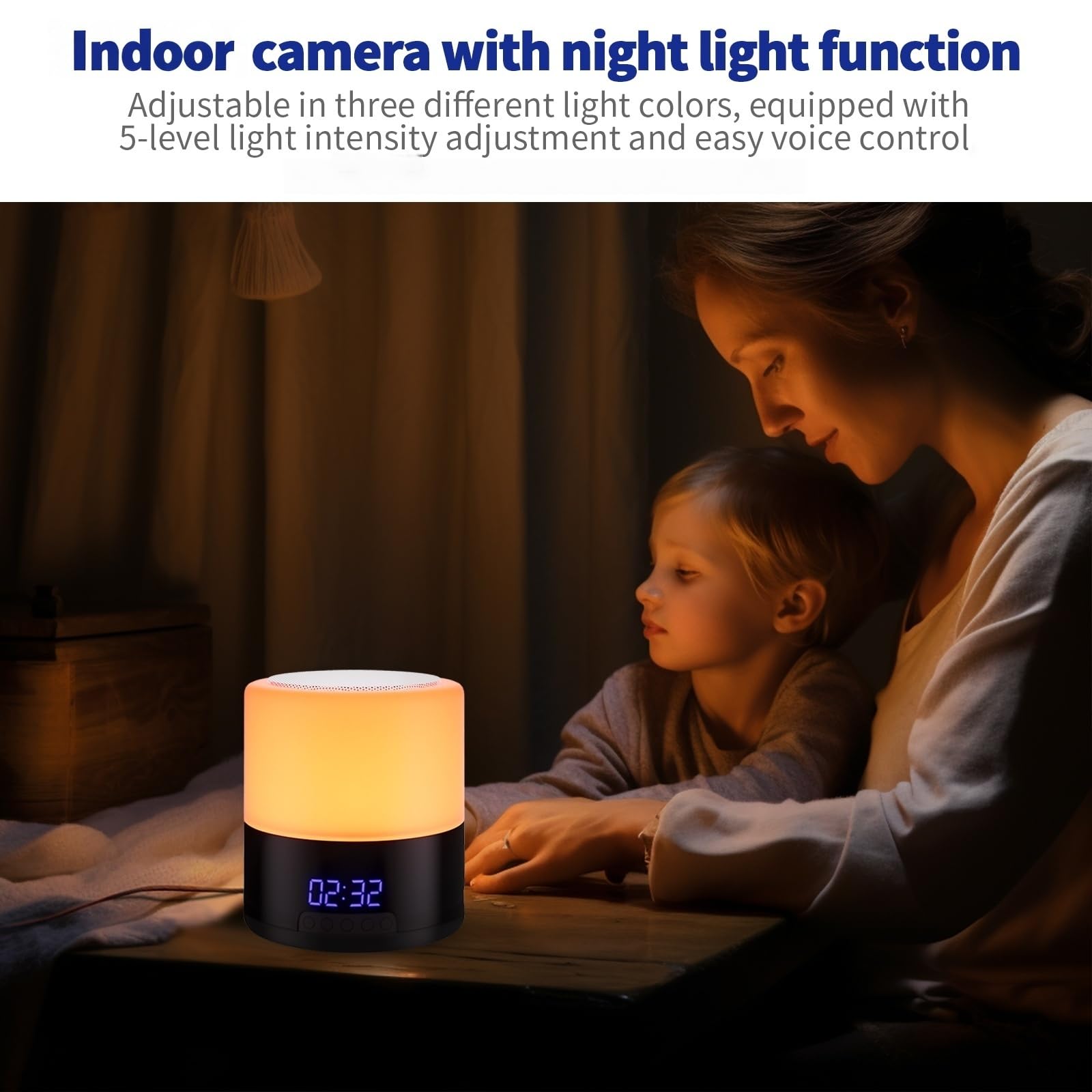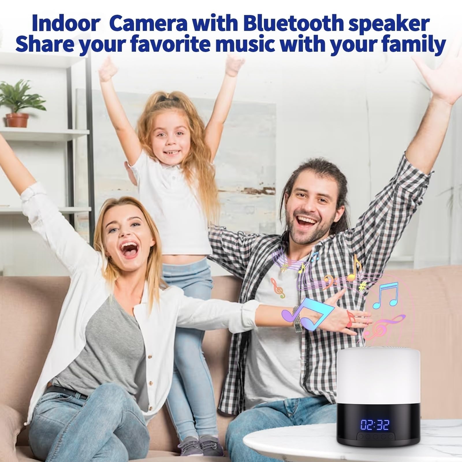 【SMART BLUETOOTH SPEAKER & NIGHT LIGHT FUNCTION】More than just a WiFi camera, this multifunctional device includes a high-quality Bluetooth speaker and 5 adjustable night light colors. It creates a cozy atmosphere, perfect for relaxation, gatherings, or daily ambiance enhancement