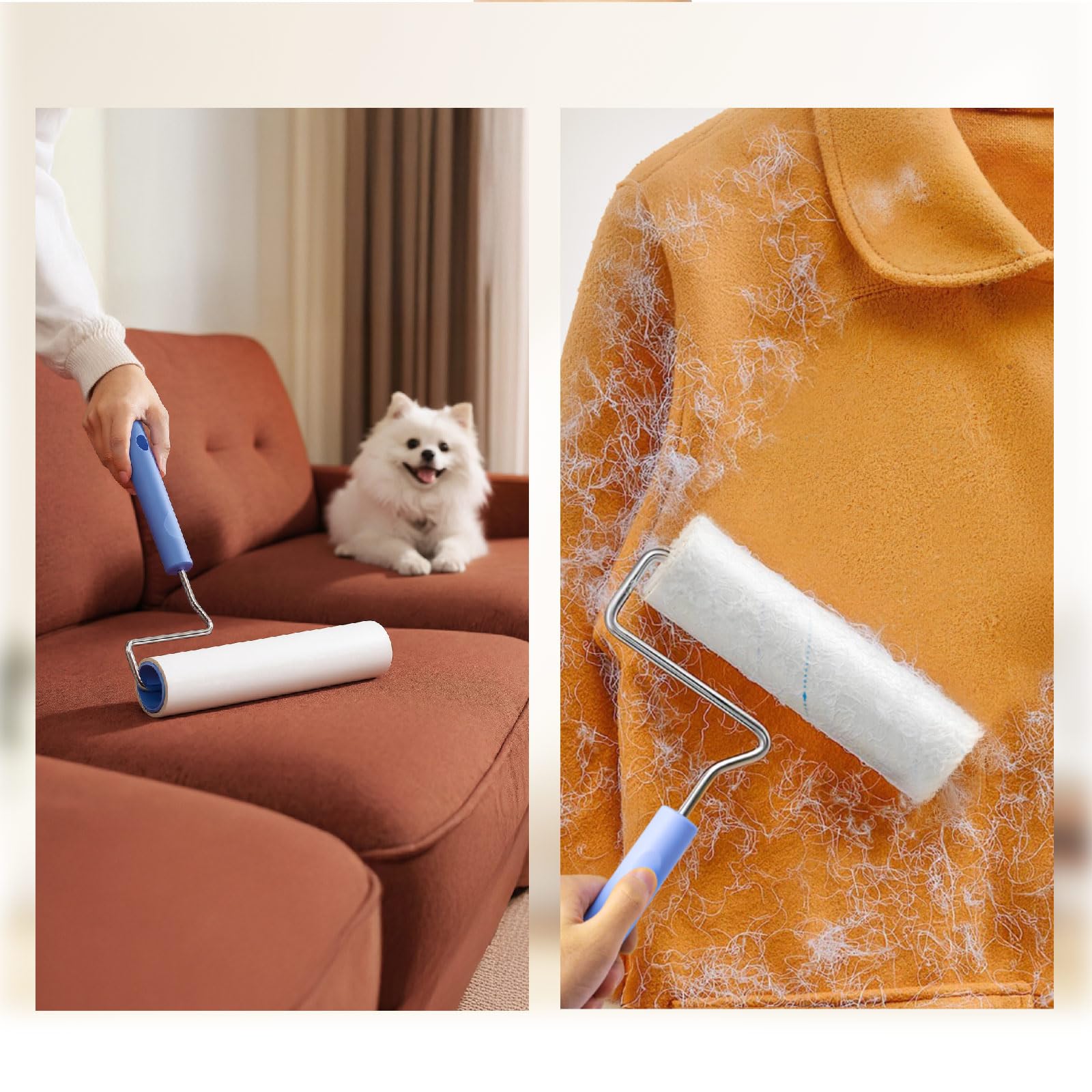 EXTRA STRONG ADHESIVE & SUPERIOR PICKUP: Our extra sticky lint roller uses a high-performance adhesive formula that captures 50% more pet hair, dander, and dust than standard sheets. It efficiently tackles pet hair removal from various surfaces in one pass, even during heavy shedding seasons.