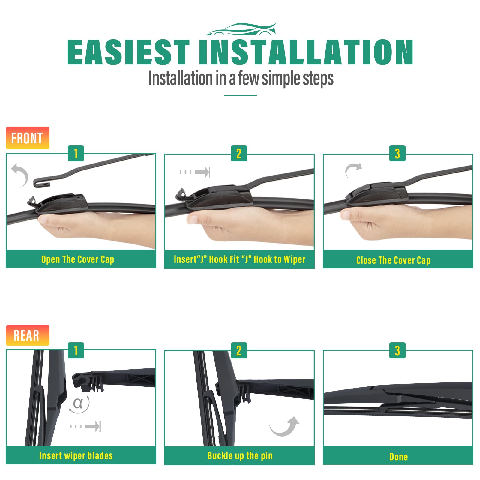 [Super Clear Wipers]: High-quality rubber blade ensures efficient and streak-free wiping.