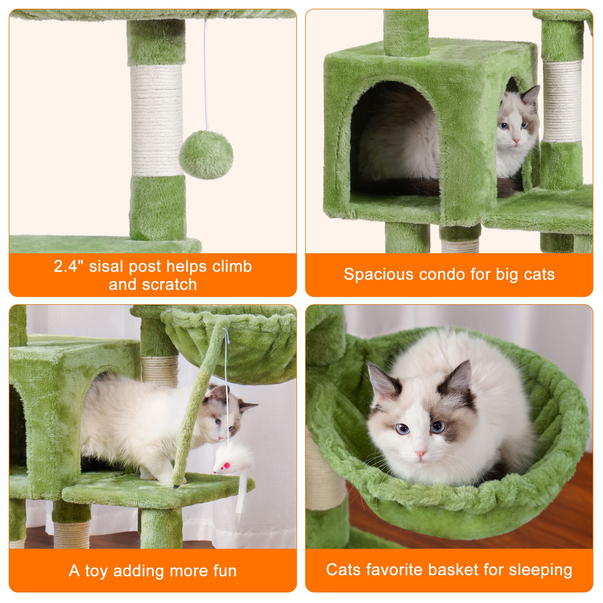 Stability is the Primary Consideration for A Cat Tower: Sturdy cat climbing frame base, sisal wrapped scratch posts and Anti-toppling devices ensures the security of active kittens and cats playing on the activity centre