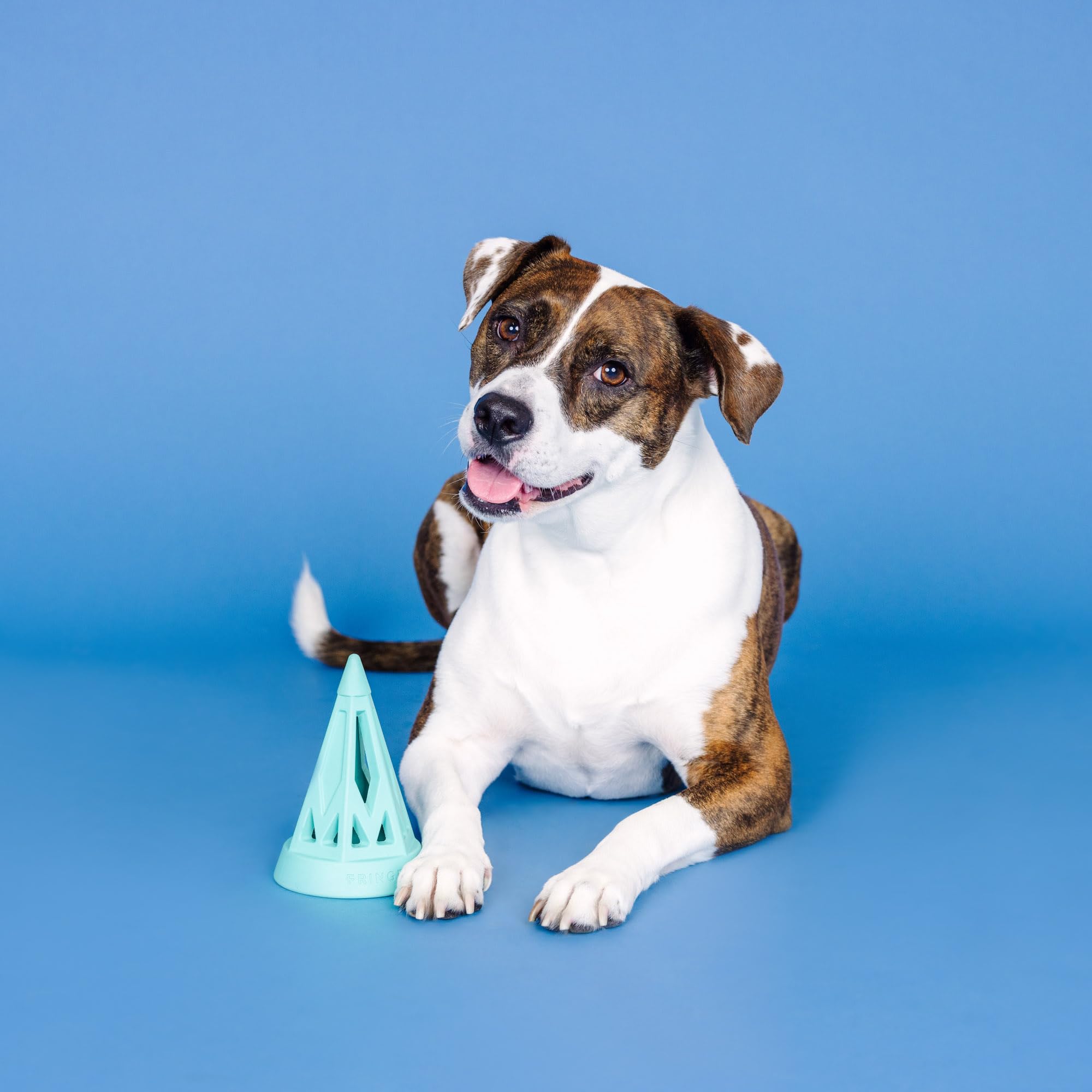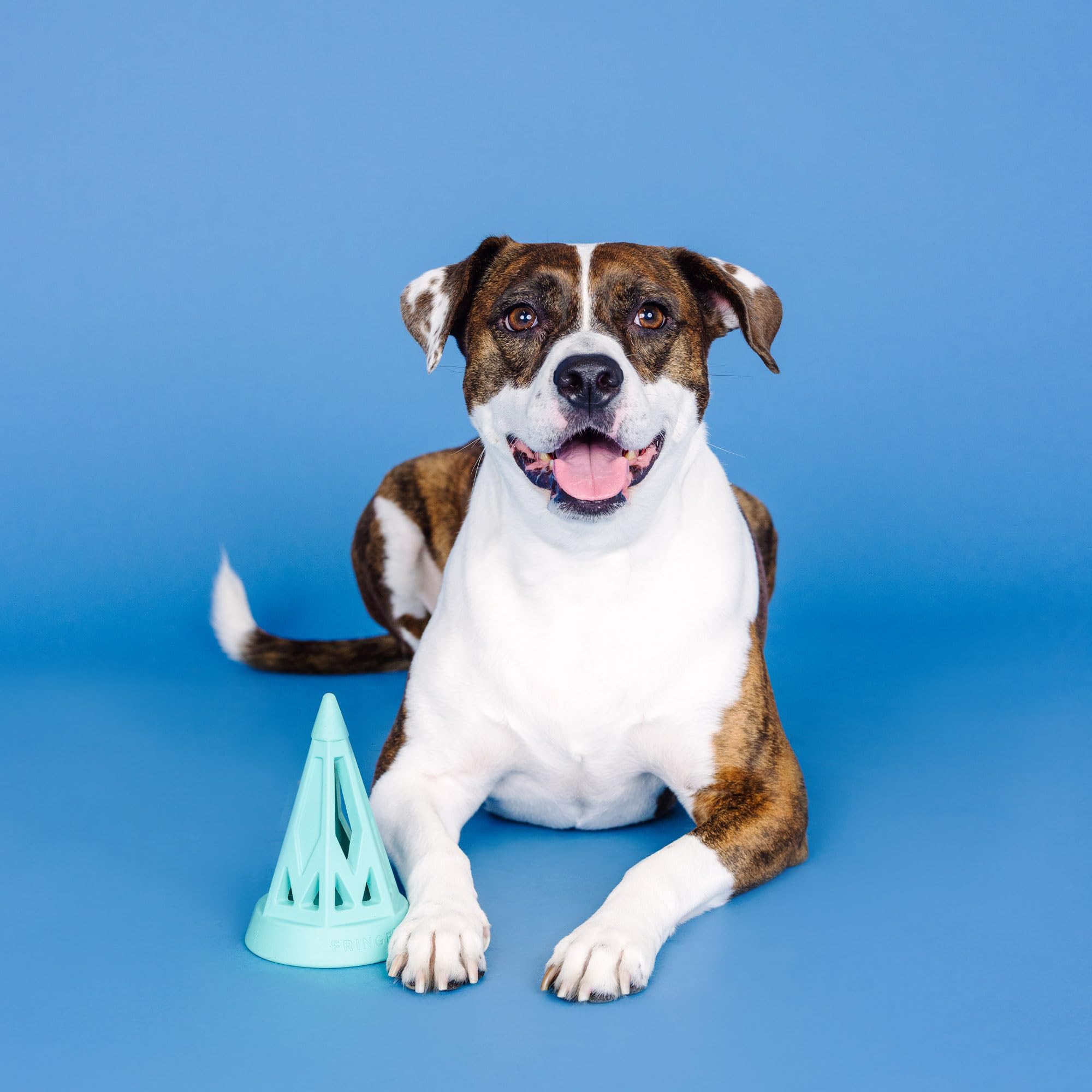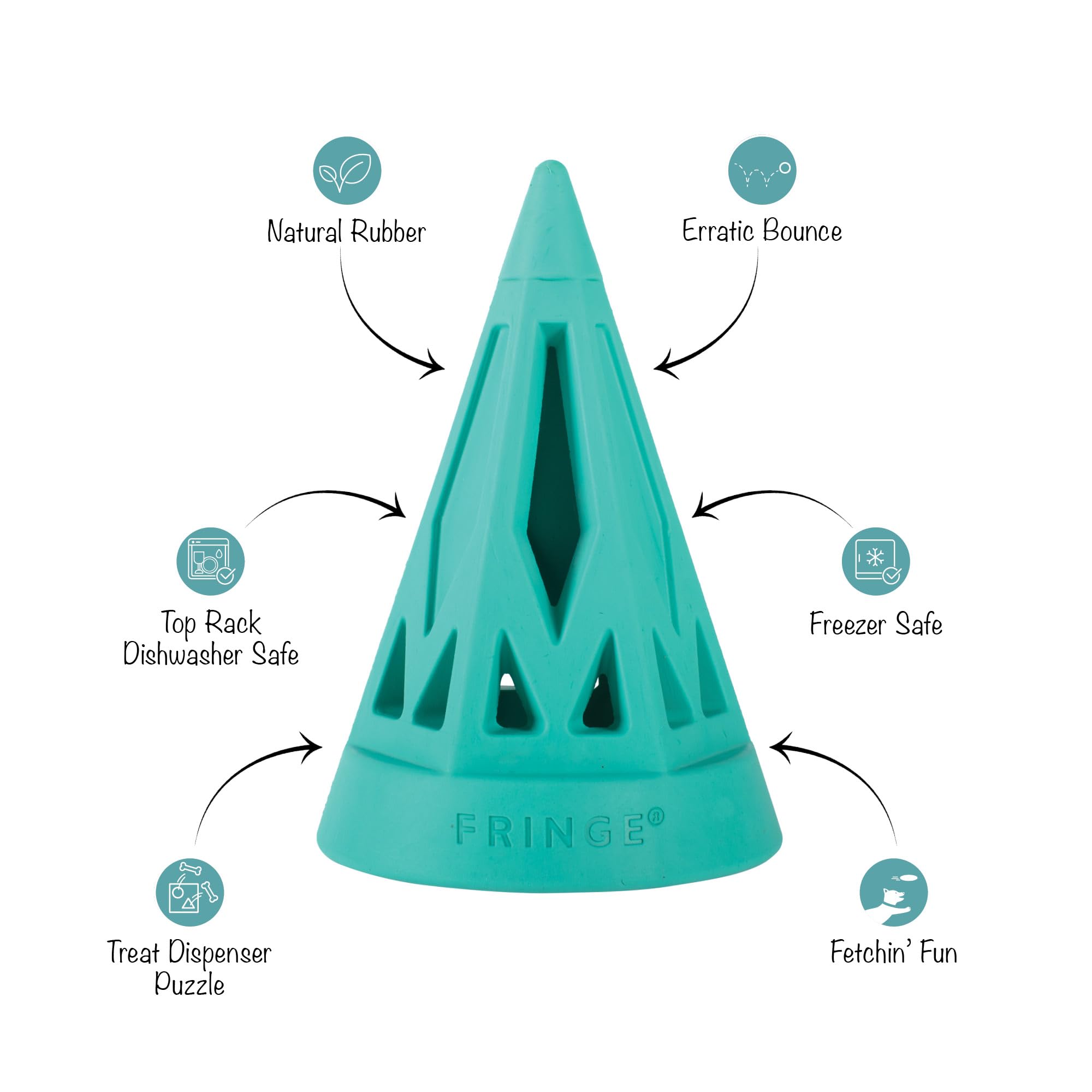 Ready to join the Dura Club? PetShop by Fringe Studio's "You Cone Do It!" turquoise rubber dog toy is for pups that love to work for their treats, chew, and play lots of fetch. As a treat dispenser puzzle with an erratic bounce and made with natural rubber, this toy was created for long-lasting interactive play. Simply fill it with treats or thread it with a bully stick, then toss it for some fetchin' fun to keep your pup busy trying to get them out. Great for all-sized dogs and strong chewers.