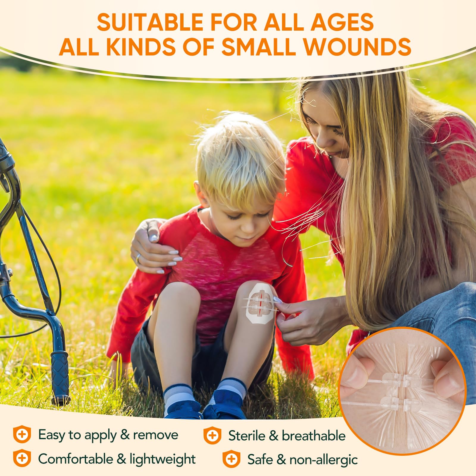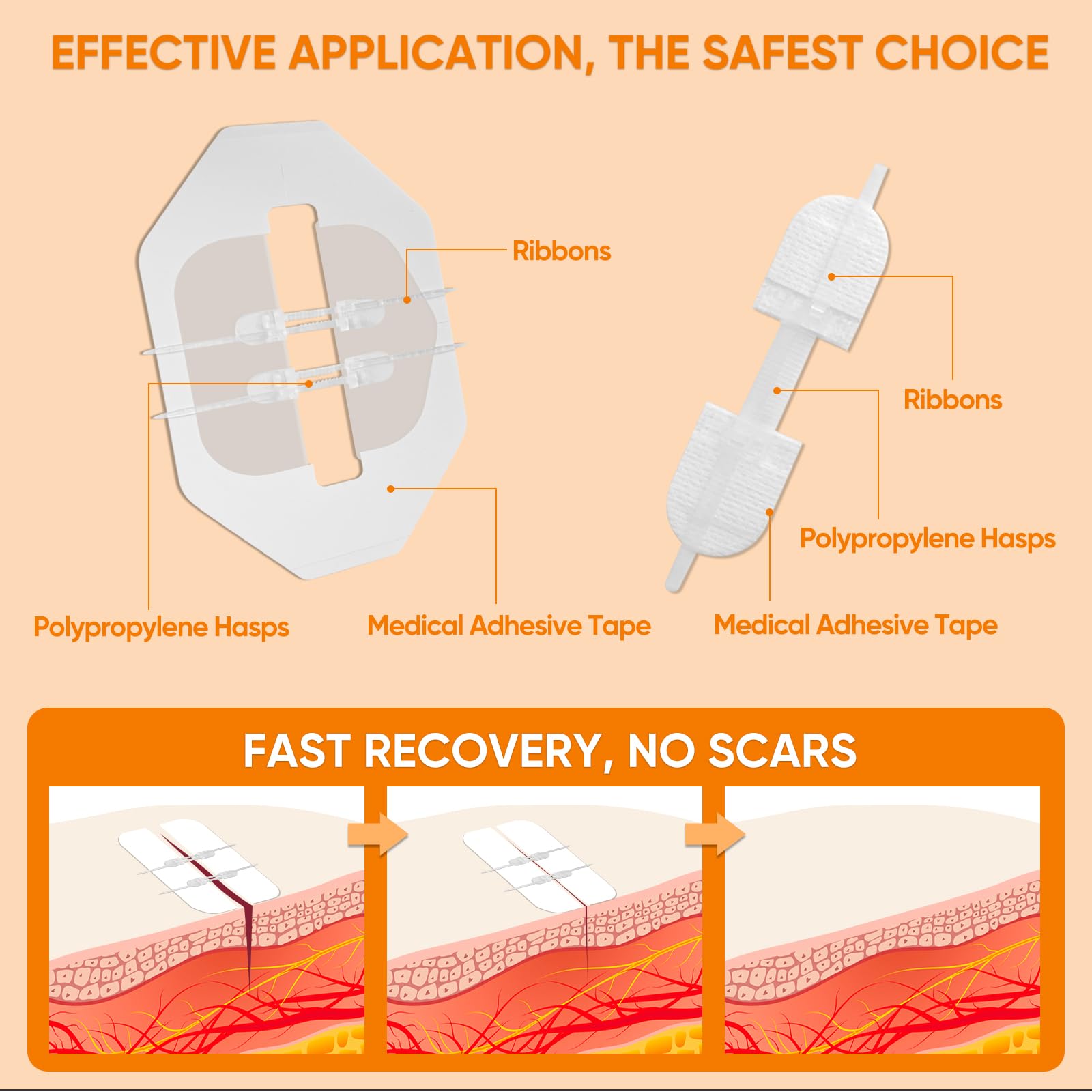 STITCHLESS: No punctures, no new pain or trauma at the wound site. The tension of the strap can be adjusted and customized to the length of the wound. Wear it and you barely feel it.