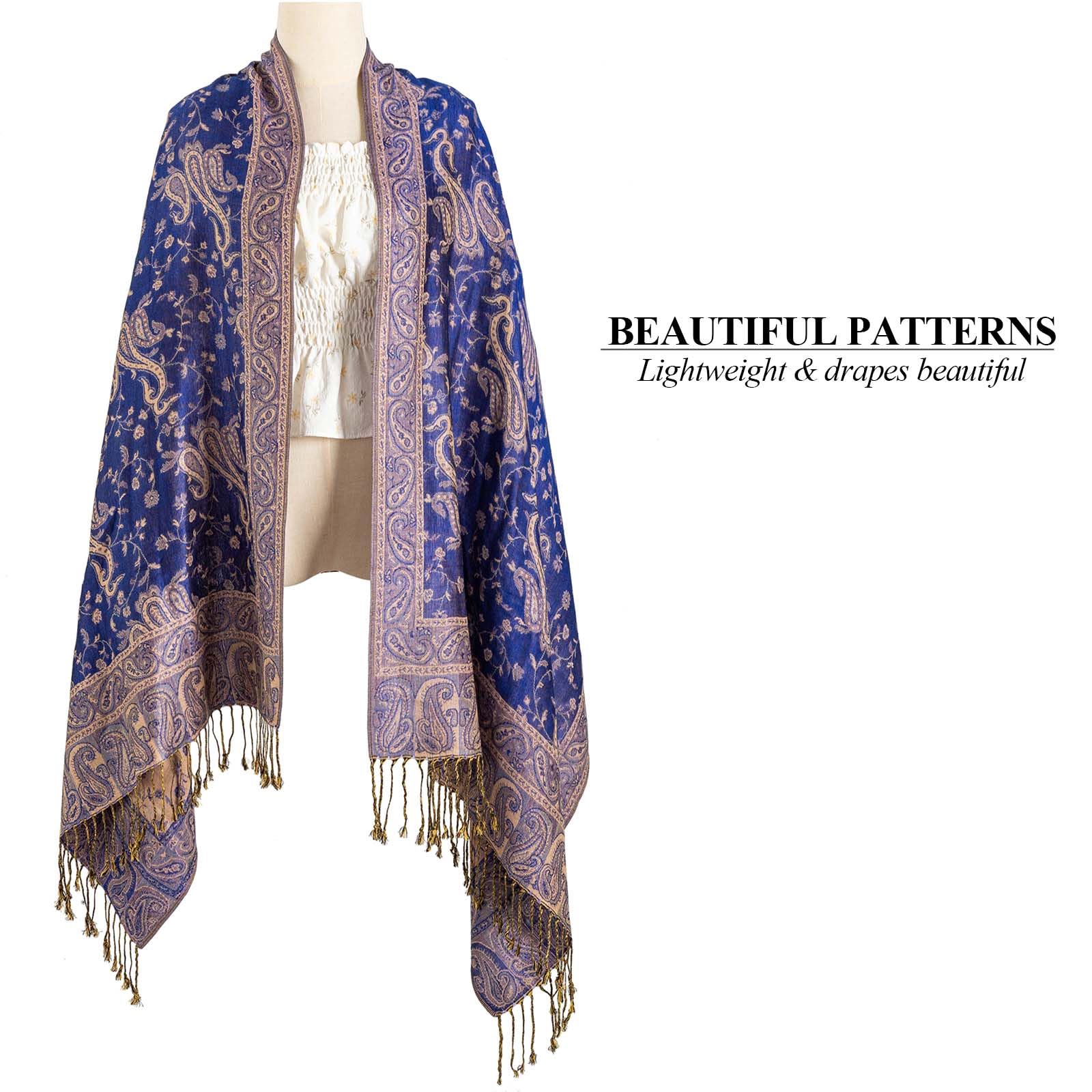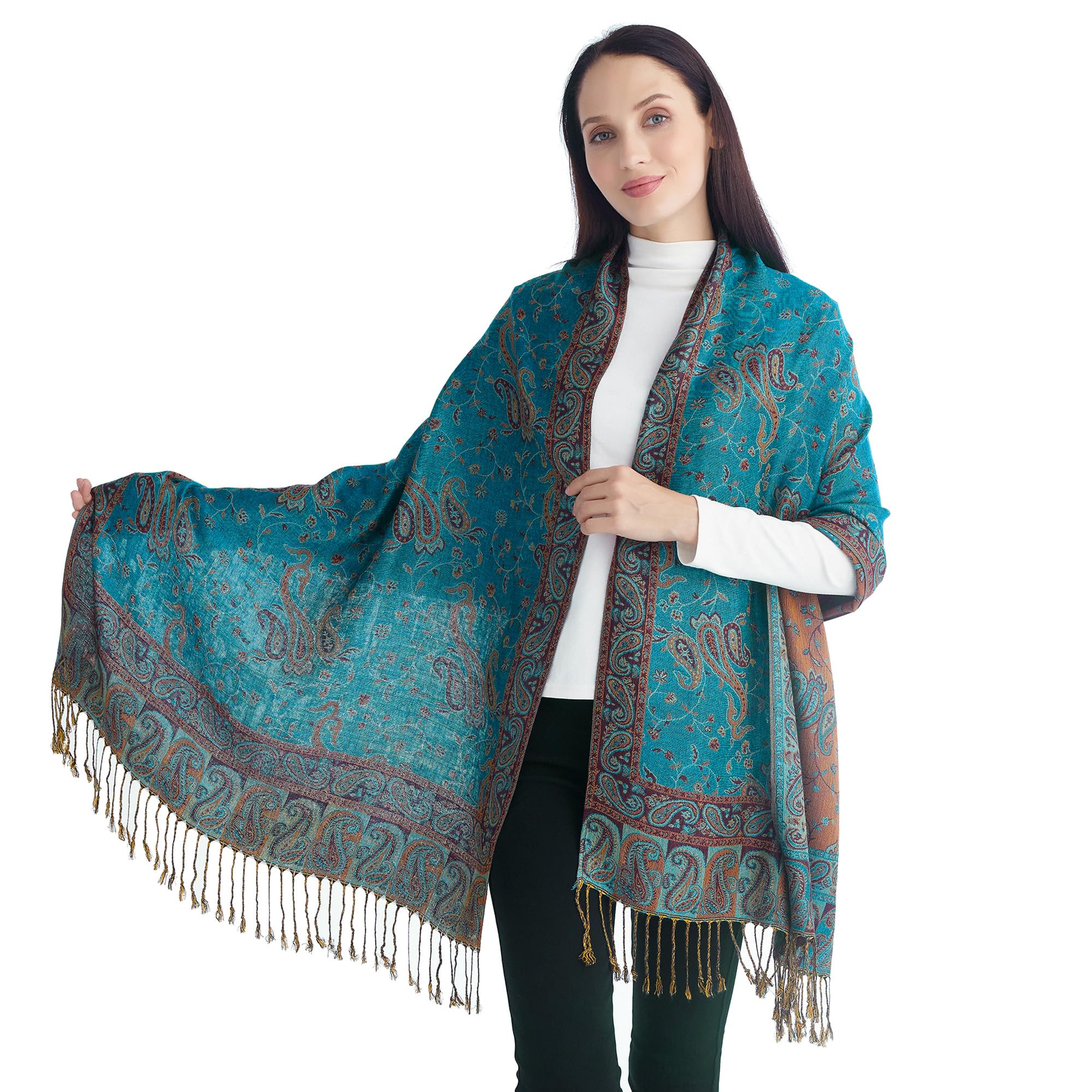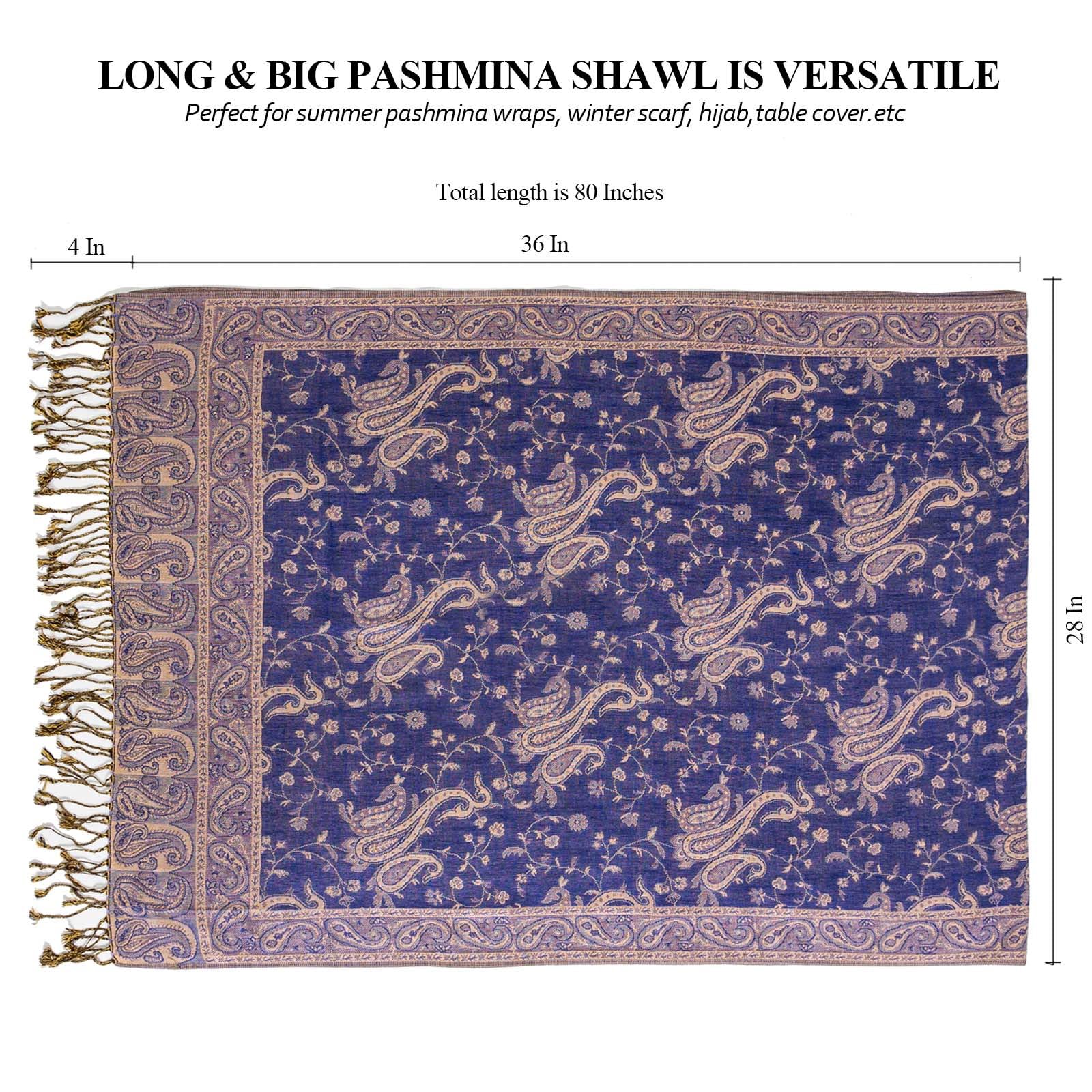 SUPER SOFT MATERIAL WITH SILKY SHEEN: AUSEKALY pashmina feel wraps for women are made of high-quality material, lluxurious soft feeling, smooth and skin-friendly, you will love the feel of it around your neck, not scratchy, no fade; Exquisite women shawls are rich in color and sheen, nicely woven pashmina feel design, elegent and stylish; Scarf for women is long and wide ( (length is 72" + 8" fringes and width is 28"), nice and big to wrap around you.