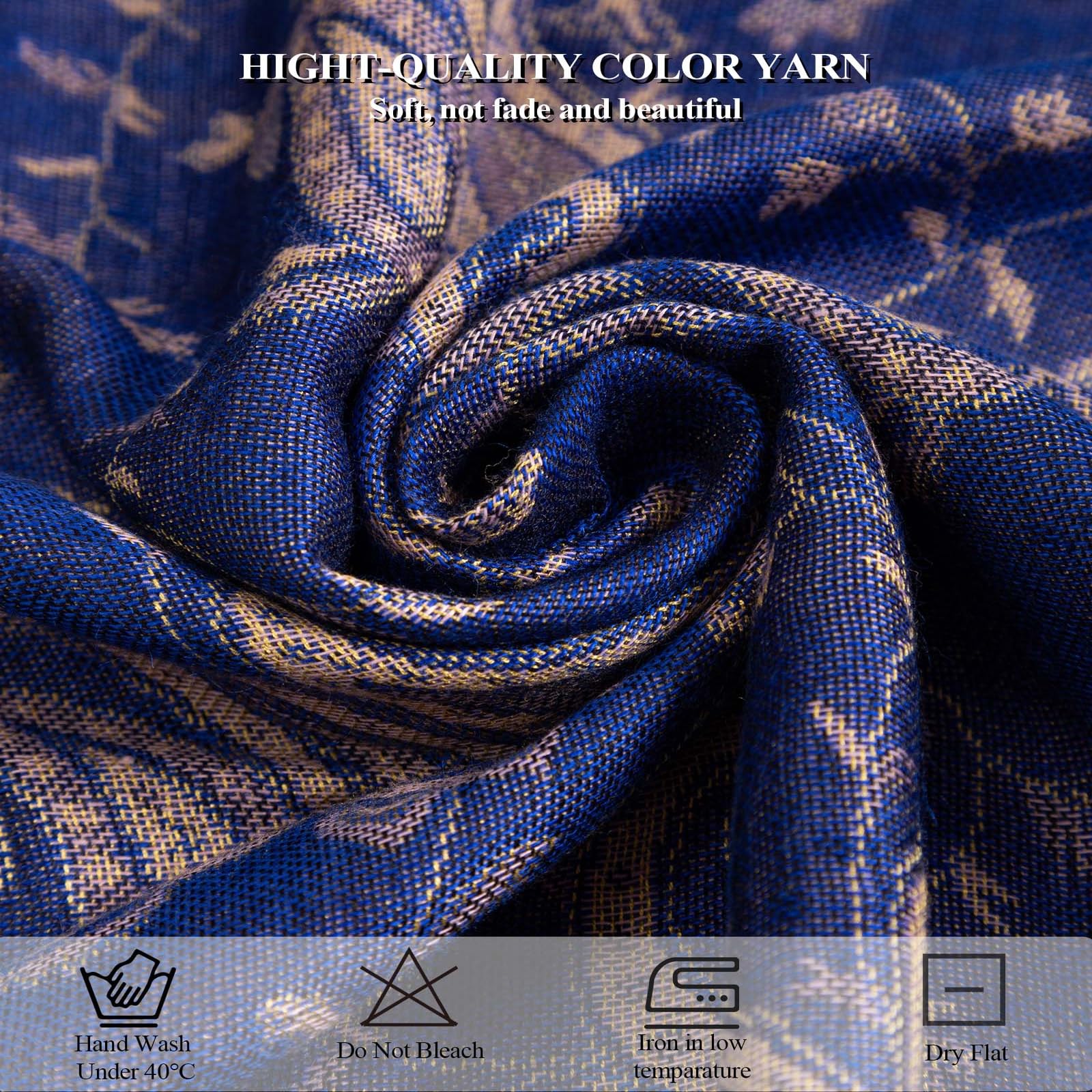 BEAUTIFUL PATTERN AND COLOR COMBINATIONS DESIGNED, NECCESARY WARDROBE ACCESSORY: Women scarf is nicely woven pashmina feel pattern design, the colors are gorgeous and vibrant;It draped beautifully, showcasing the stunning design with perfect grace. Beautiful color collection with neat tassel fringe, just wearing it, you will be very attractive and get lots of compliment.