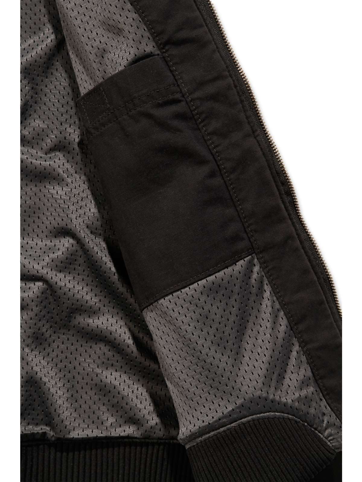 Description This bomber jacket is built with rugged flex stretch technology for ease of movement, and is stylish enough to go from work to dinner in a flash. Made from 8-ounce, 98 percent cotton/2 percent spandex canvas, it offers rugged flex technology for ease of movement, a mesh lining, rib-knit cuffs, collar and waistband, two lower-front pockets, a chest map pocket, an interior pocket and triple-stitched main seams for durability.