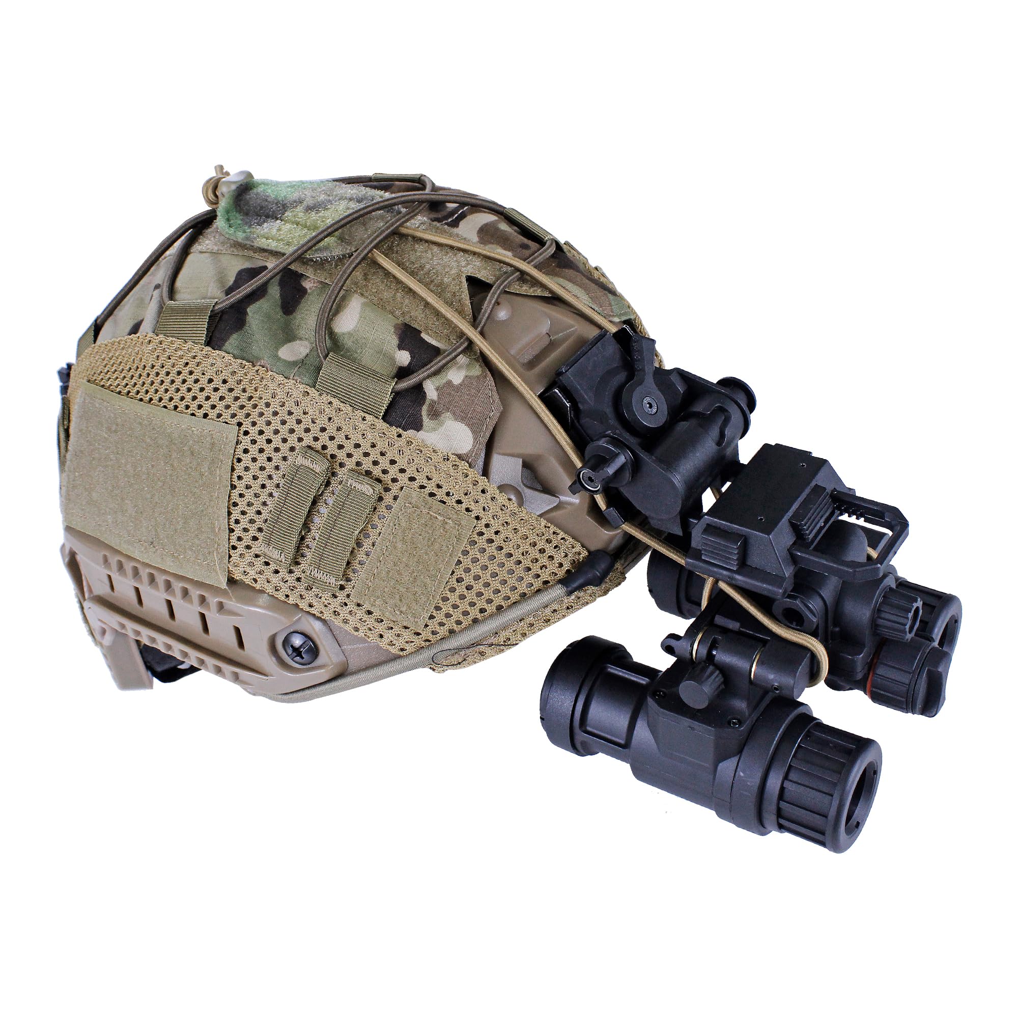 The NVG lanyard is designed for prevent night vision goggles falling down when accidental release or mount failure happens. The night vision goggle lanyard is built with 32" long bungee cord and adjustable two hole cord lock which allows you not only securely retain NVG but also mount tourniquet on battle belt, push-to-talks on tactical vest, etc.. The elastic retention bungee cord is hook and loop velcro attachment. You can attach it on any hook and loop velcro surface. Measurements of NVG lanyard: 2.79" Max. length and 1.85" width. Weight: 0.37oz. Optional color: Multicam, Black, Ranger green and Coyote brown.