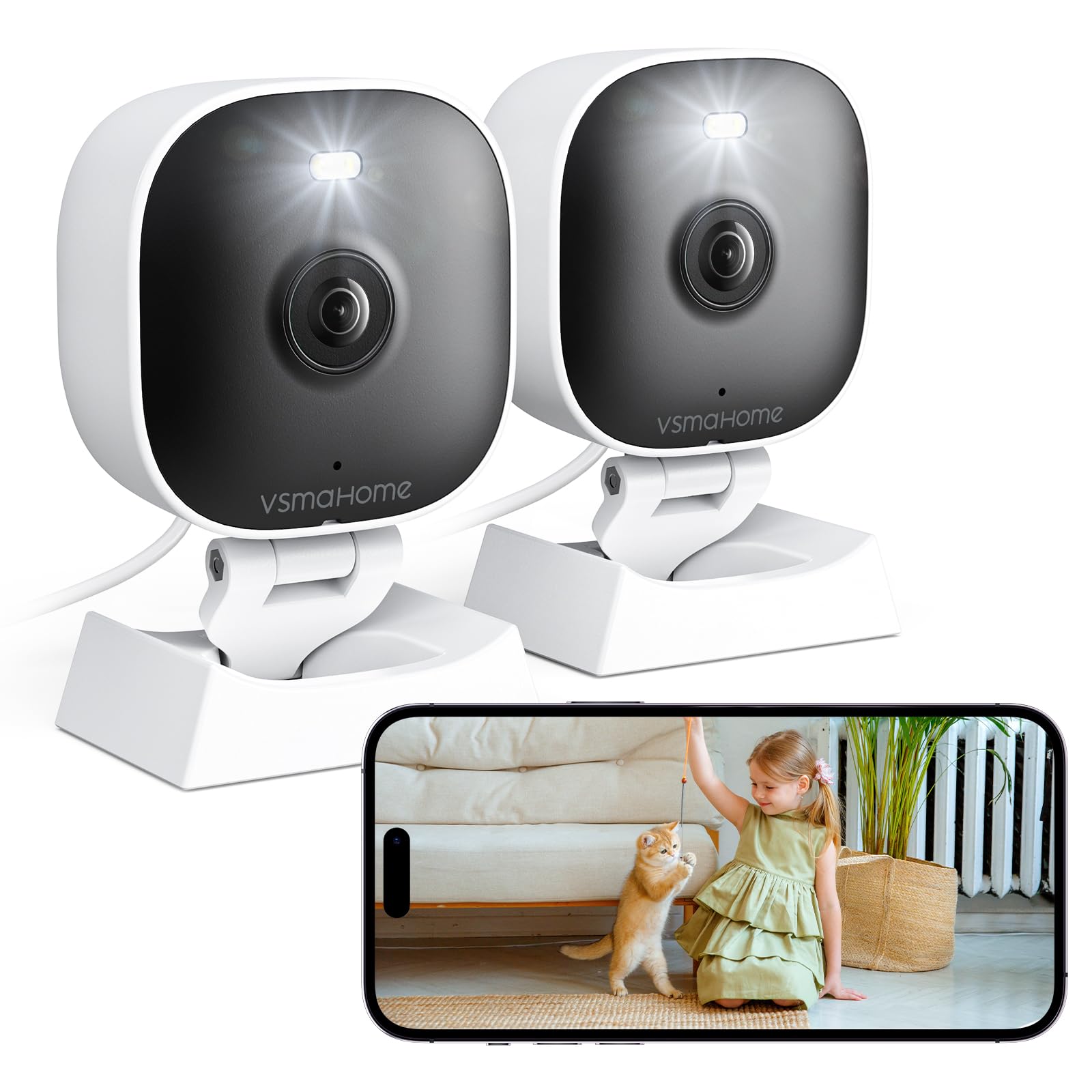 4MP Ultra HD & Color Night Vision: See your home in vivid detail, day and night. This indoor security camera delivers sharper 4MP clarity and achieves full-color night vision through built-in white lights. The security camera outdoor is perfect for monitoring living rooms, bedrooms, garages, driveways, and entryways — never miss a moment. For professional setup and optimization of your VSMAHOME camera, call +1(978)757-4977 (Mon–Fri, 9:00 am–18:00 pm ET).