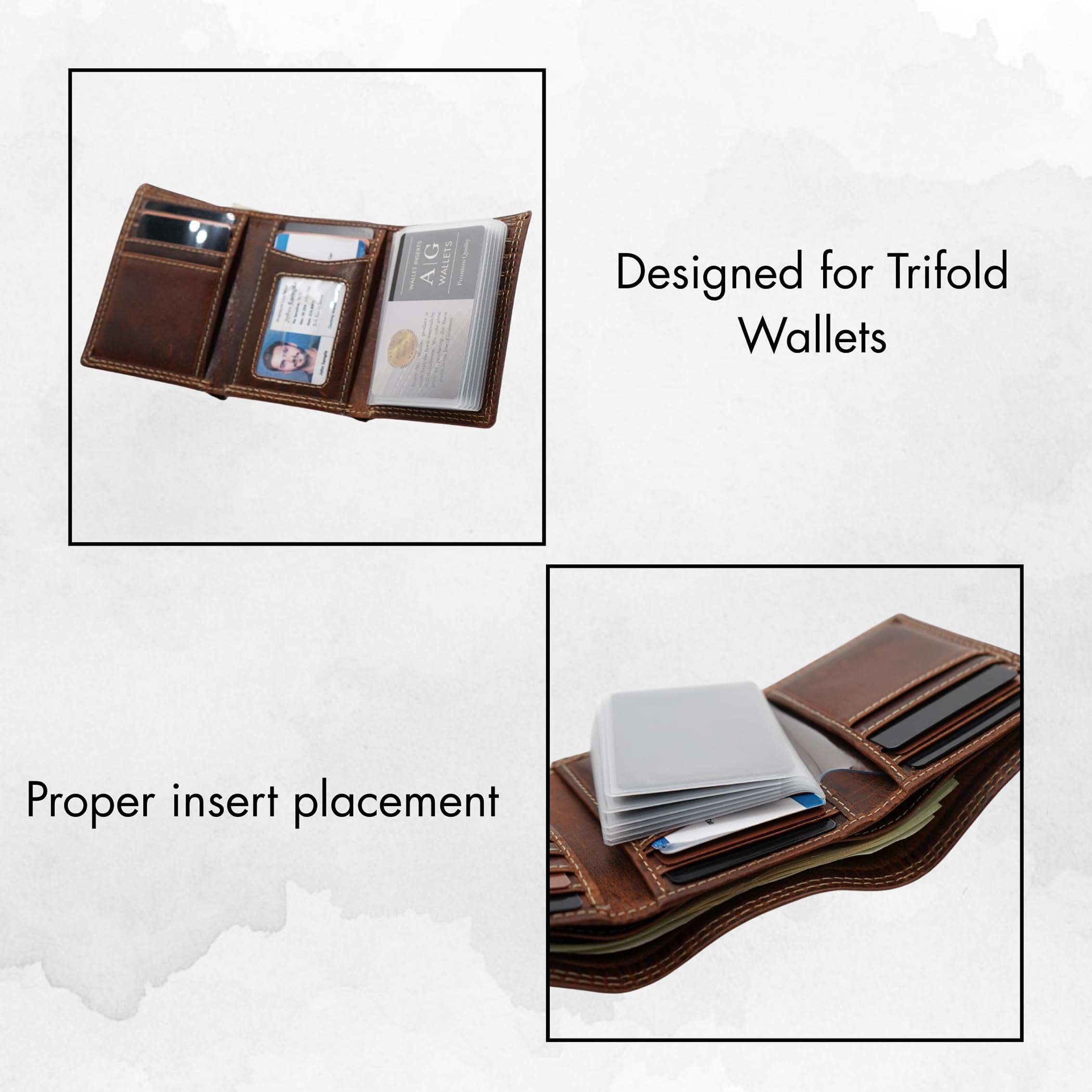 Desgined for Trifold Wallets- Includes two clear wallet inserts. 6-page trifold insert provides secure card and photo storage without adding unnecessary bulk to your wallet.